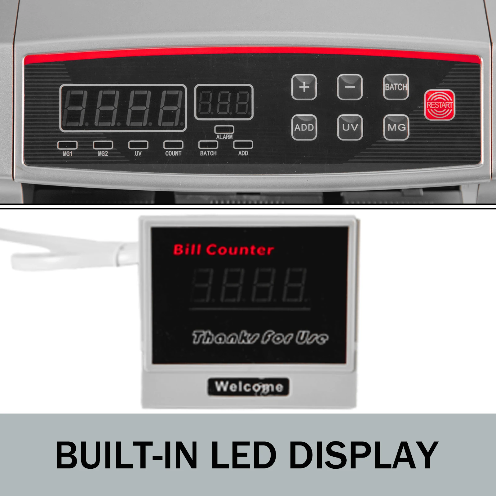 - Dual Display: Equipped with a premium LCD display screen and an external LED display, the SucceBuy money counting machine offers a clear view of the counting results from different angles, for both you and your clients. Furthermore, the screen turns red and sounds a beep when detecting counterfeit bills, ensuring that no fake money goes unnoticed.