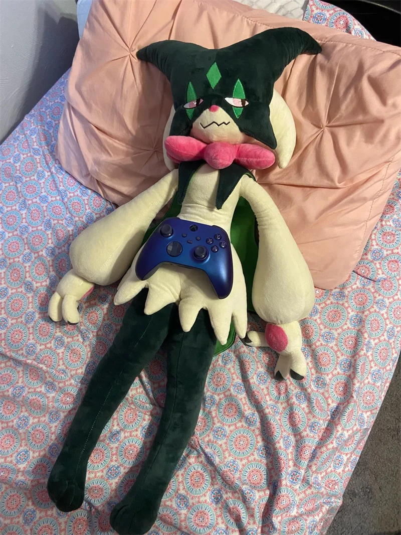 The plush toy is crafted with soft, high-quality materials, providing a comforting and huggable texture. It gives off an uncanny resemblance to the Pokemon creature Meowscarada, complete with an authentic color palette and precision detailing. Not only does it serve as a toy, but it can also be used as a plush throw pillow for added comfort.