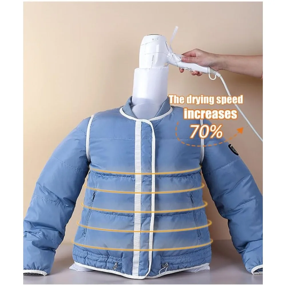 - Portable laundry dryer bag, made of polyester Highly breathable, the air is heated quickly with a hairdryer and the hot air is evenly distributed through the dryer bag so that clothes can be dried quickly.