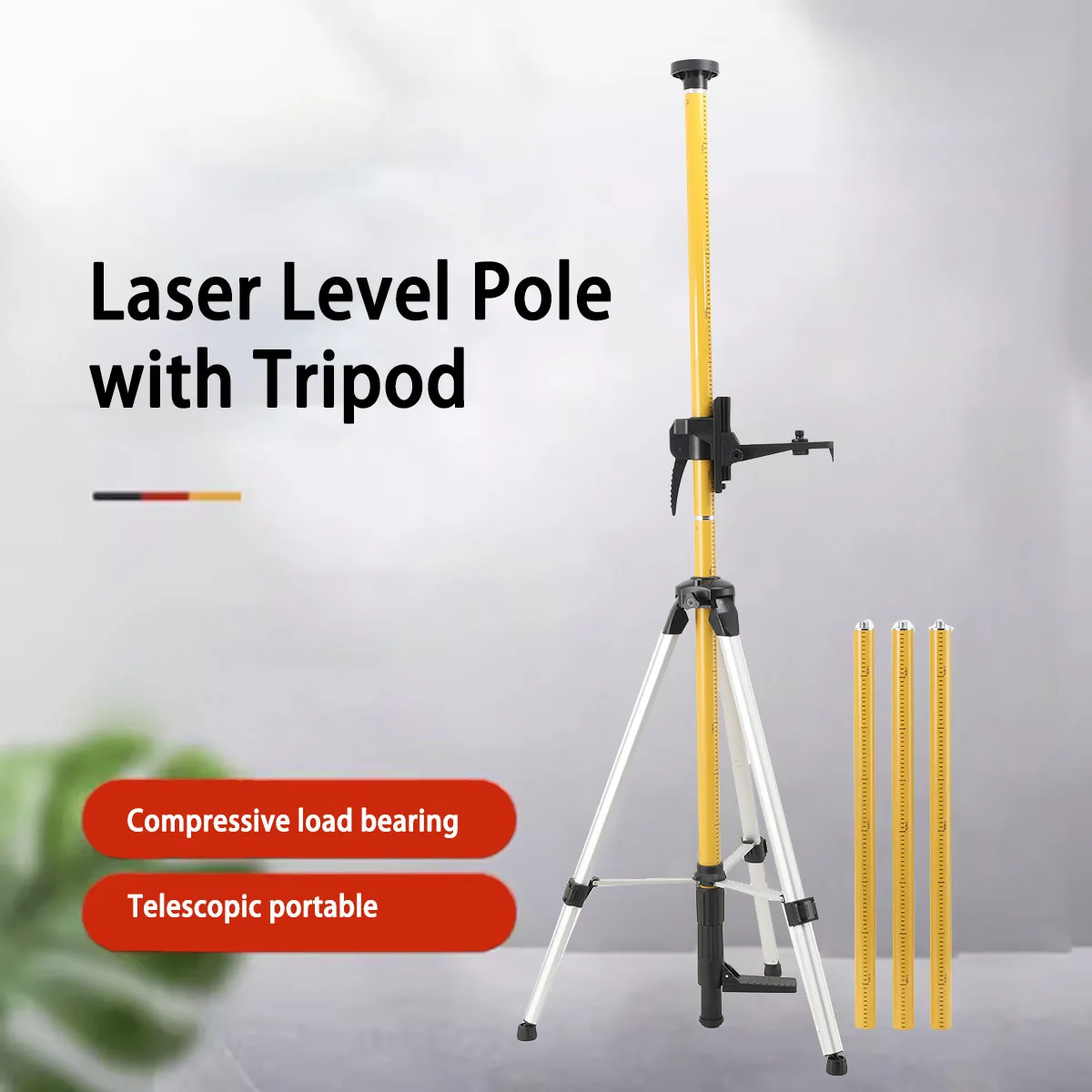3m Laser Mounting Pole Multi Function Fine Tuning Laser Telescopic Rod with Base Leveling Tool for Rotary and Line Lasers