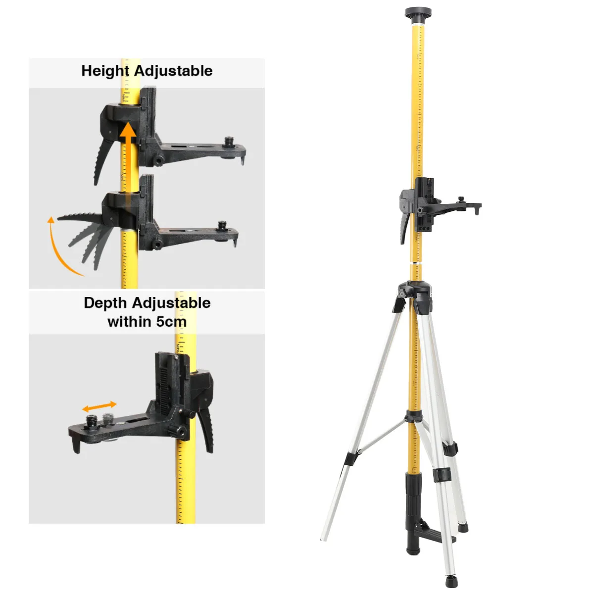 This telescopic rod stands out with its multifunctionality. It’s specifically designed to support the weight of complex laser equipment securely. Its robust structure ensures stability, thereby reducing the risk of equipment damage due to accidental slips or falls. The pole’s construction from durable materials promises longevity, ensuring can withstand both regular use and the rigors of potential fieldwork.