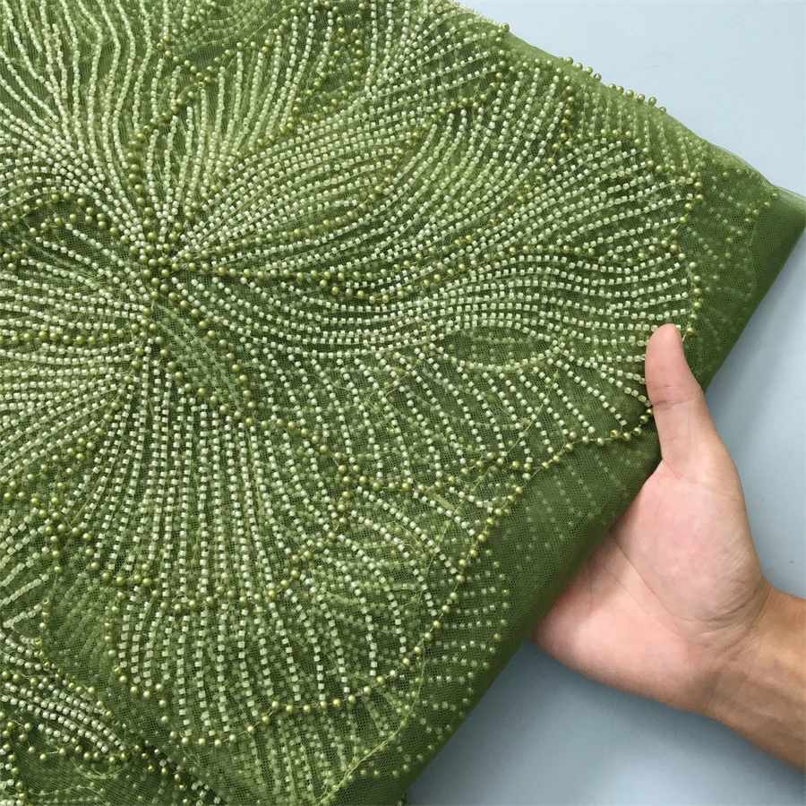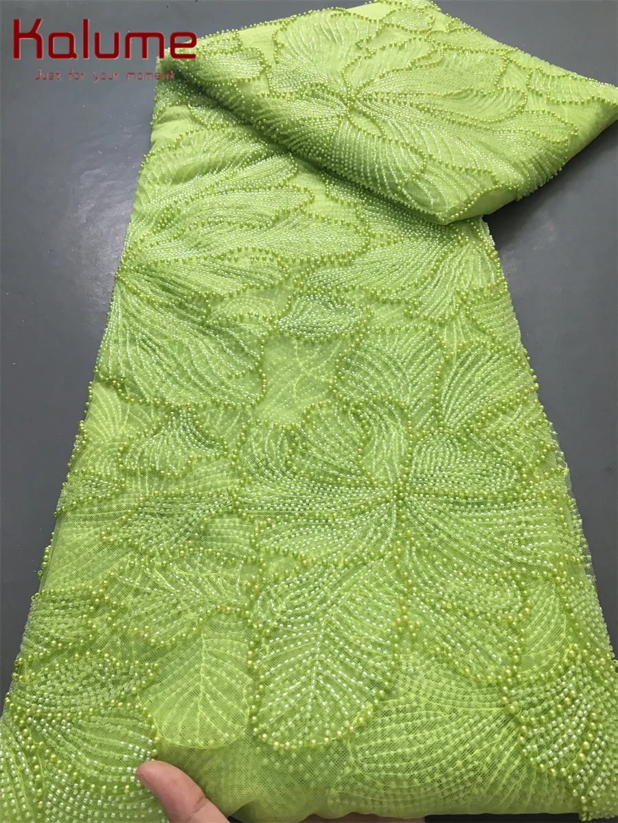 5yard Kalume Green French Mesh Lace Fabric Beads African Lace Fabrics Nigerian Mesh Lace Fabric For Diy Dresses Party Wedding F4034