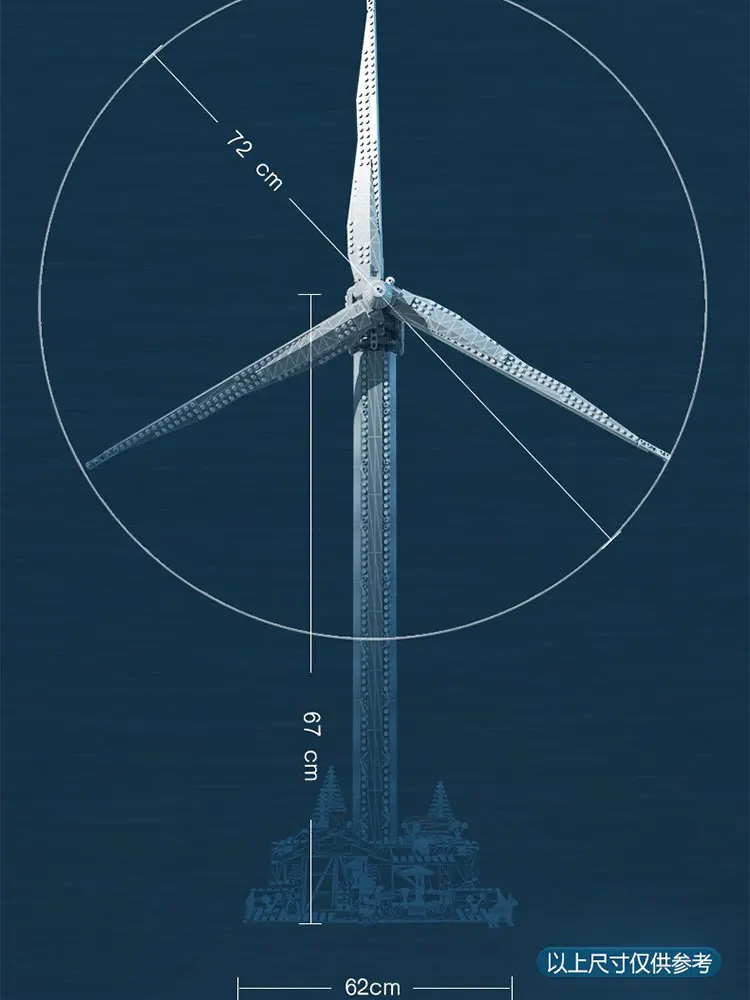 - The product includes 844 individual building blocks that adhere to create a large, intricate wind turbine model.
