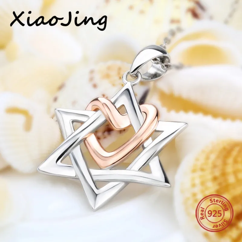 925 Sterling Silver Star of David With Rose Gold Color Love Heart Pendants & Necklaces For Women Fashion Jewelry Gift