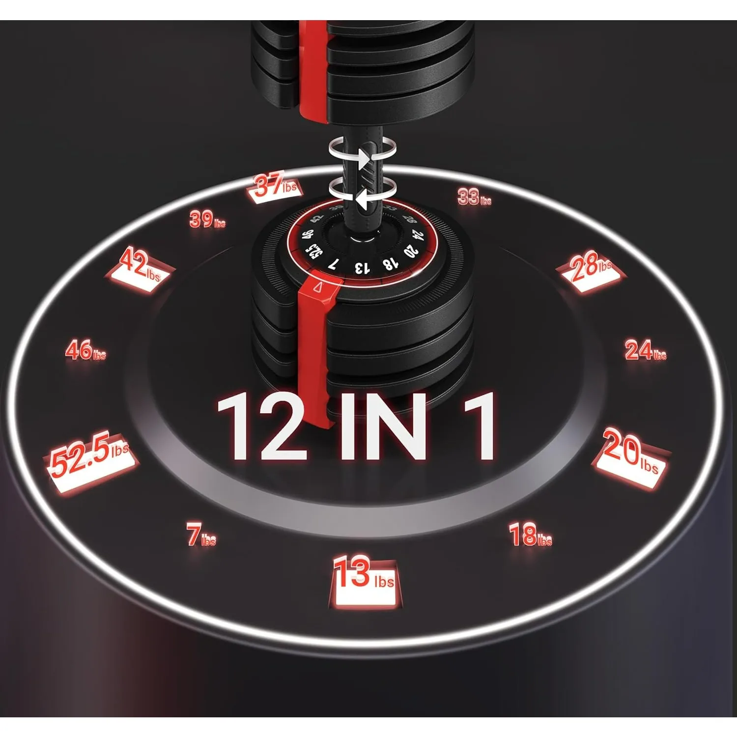 • 12-IN-1 ADJUSTABLE DUMBBELLS:This dumbbell set spans a wide weight range from 7 lb to 52.5 lb in diverse and smaller increments to facilitate gradual resistance, intensity, or volume adjustments.