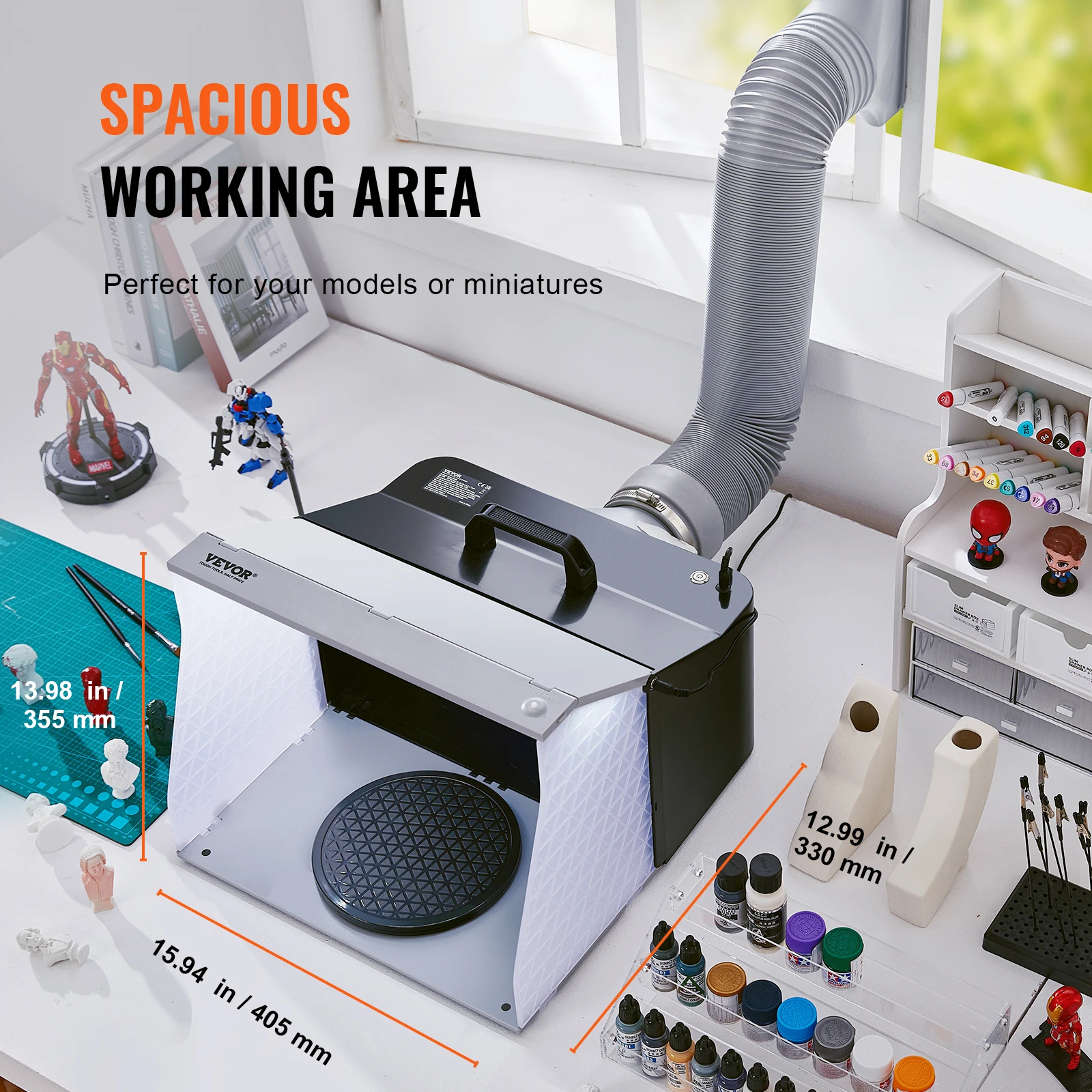 - The product is suitable for airbrush painting, providing a controlled and safe environment for spray painting tasks.