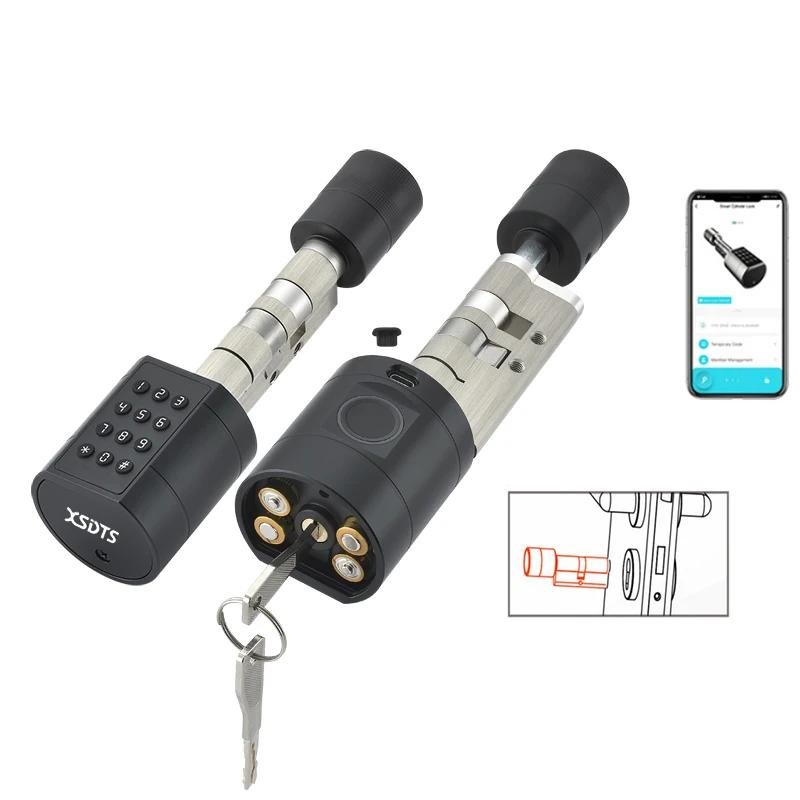 - The product is an electronic smart door lock that uses an APP fingerprint cylinder for access.