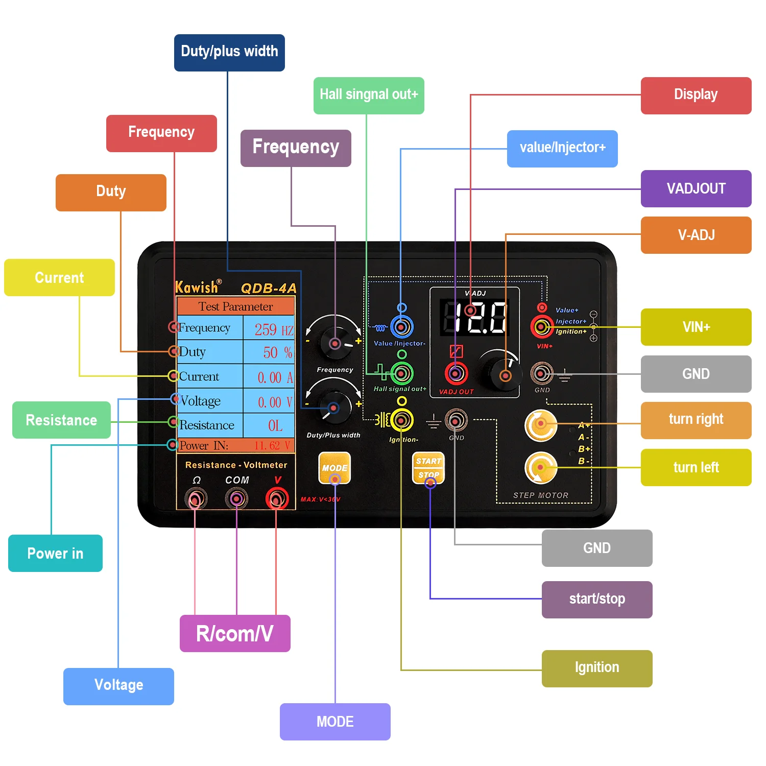 • The device can be used to test idling stepper motors, assisting mechanics in diagnosing these key components in engine performance.