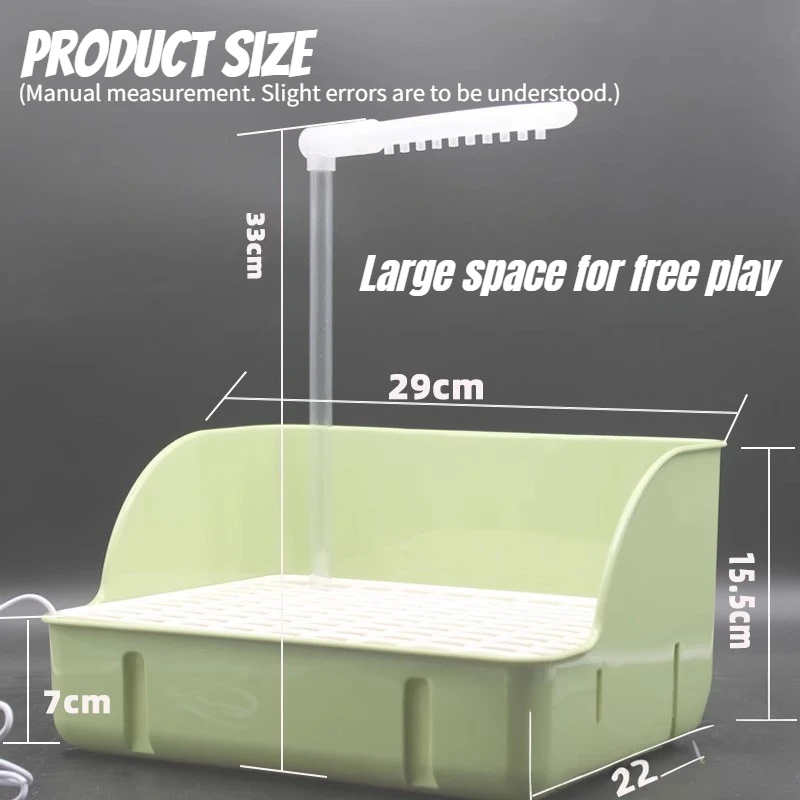 - Versatile Bird Compatibility: Designed for budgerigars, peony cockatiels, and sun conures, this electric bath basin is a versatile addition to your bird’s toy collection.