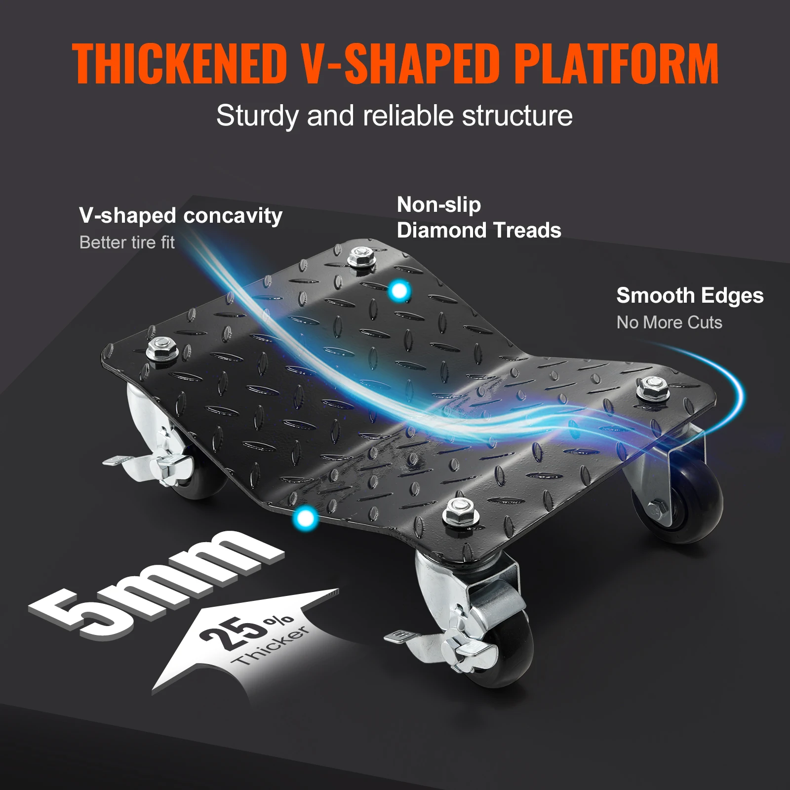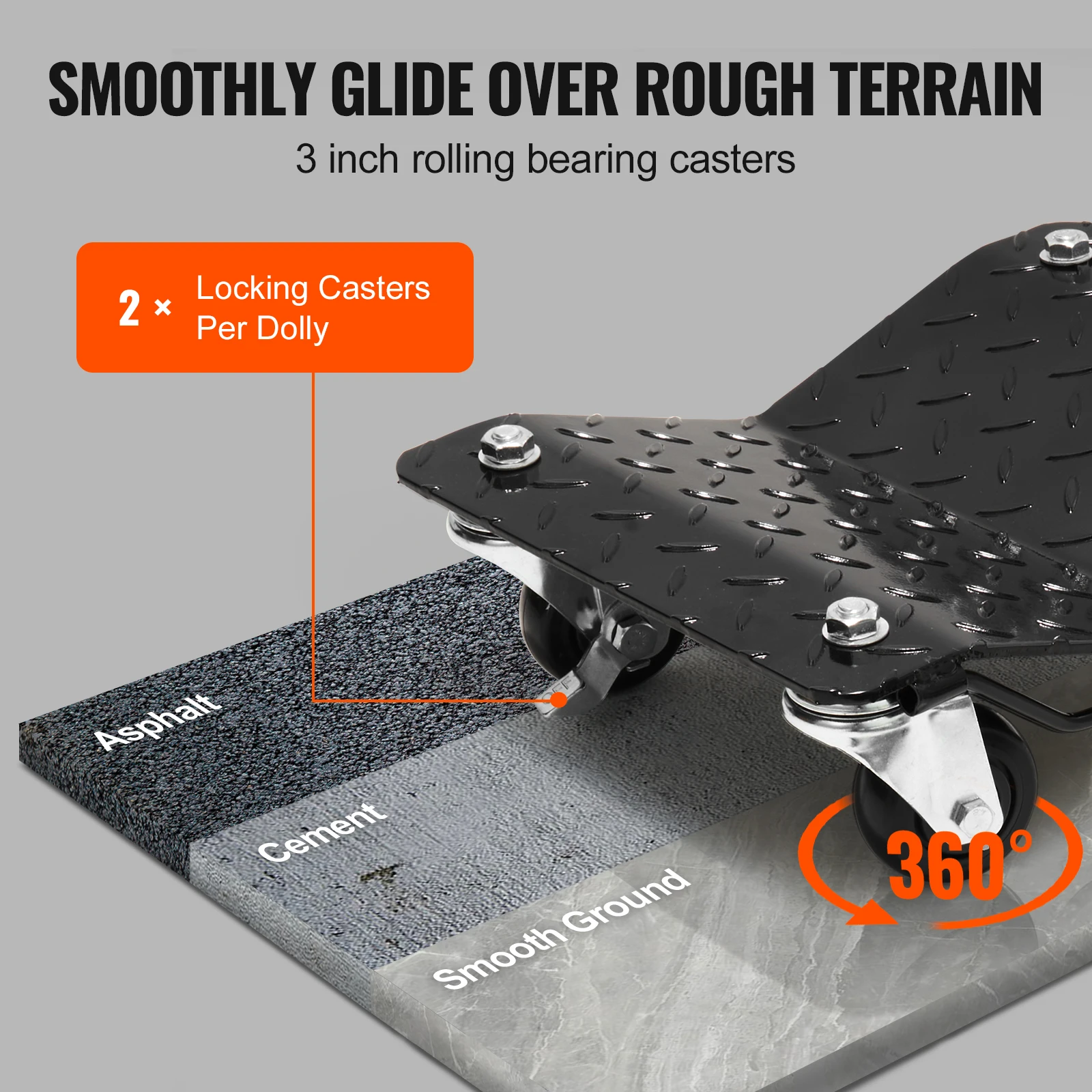 - Easy Maneuverability: Equipped with 3-inch rolling bearing universal casters and locking casters, the cart dolly cart ensures smooth and secure movement. You have complete control over the direction and positioning of your vehicle. The foot brake lets you instantly lock the dolly, providing convenience and security during maintenance work.