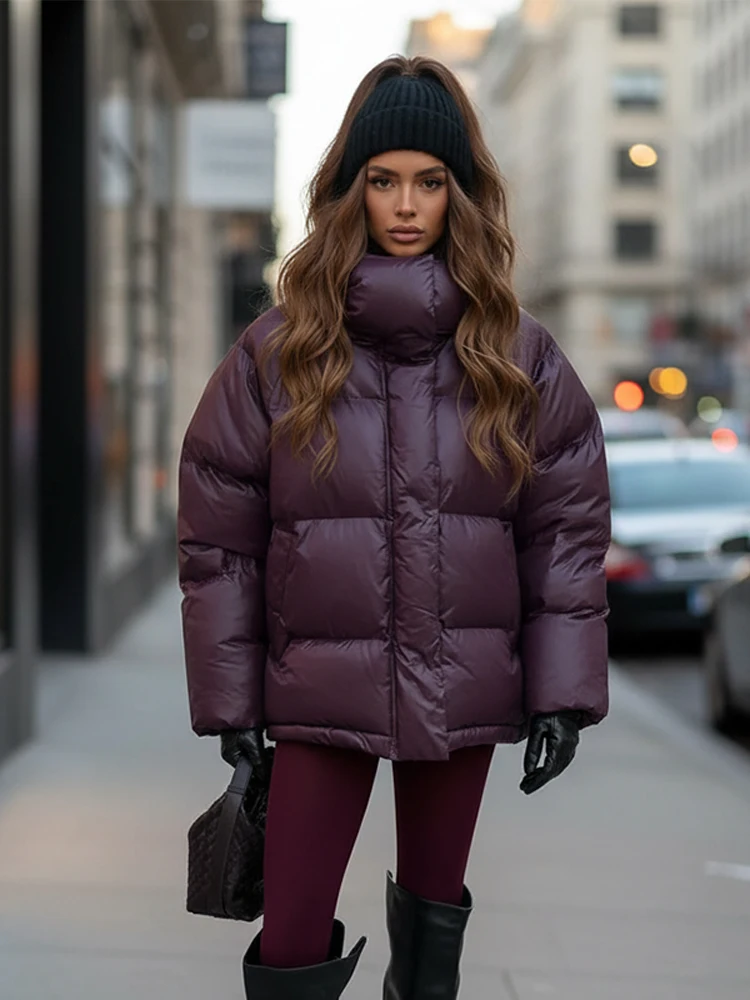 Glossy Shiny Women ‘s Down Jackets Vintage Hooded Zipper Puffer Full Sleeve Jackets For Woman 2025 Woman Winter Coats Outwears