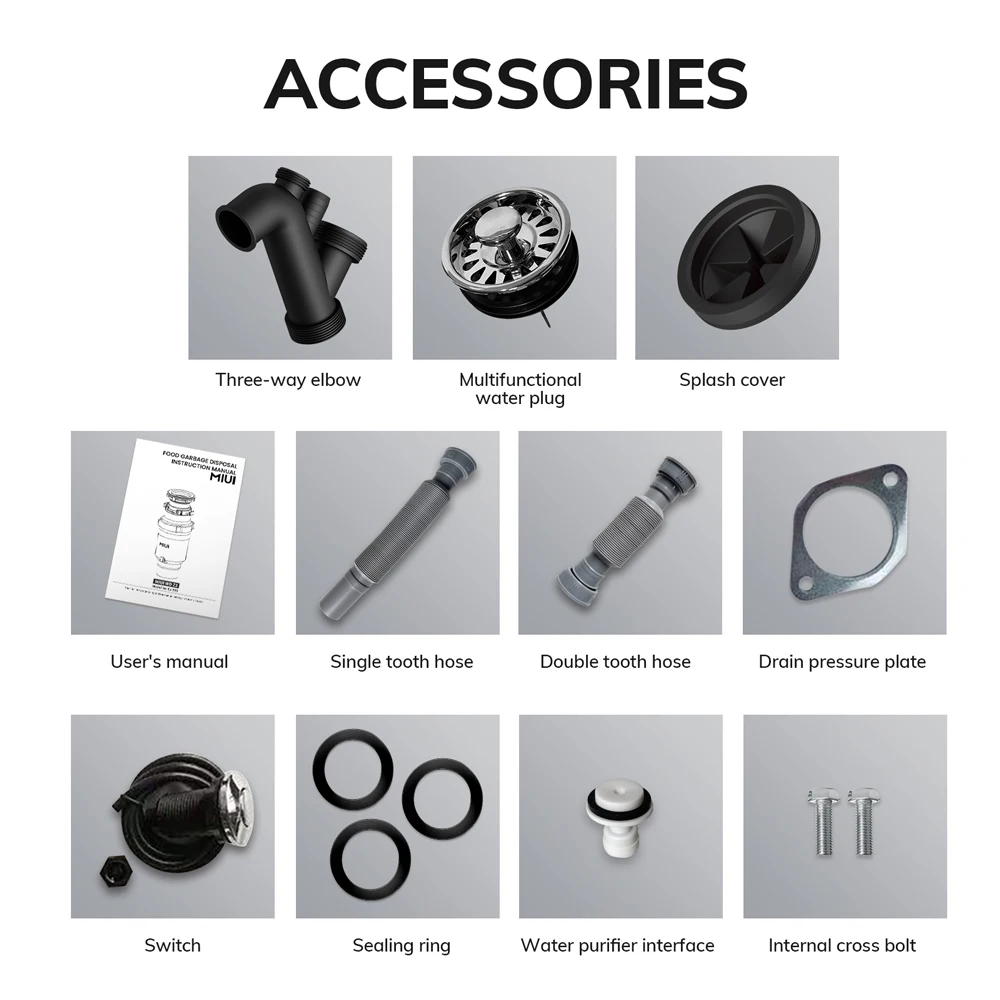 - The garbage disposal system features a power cord which is included in the package.