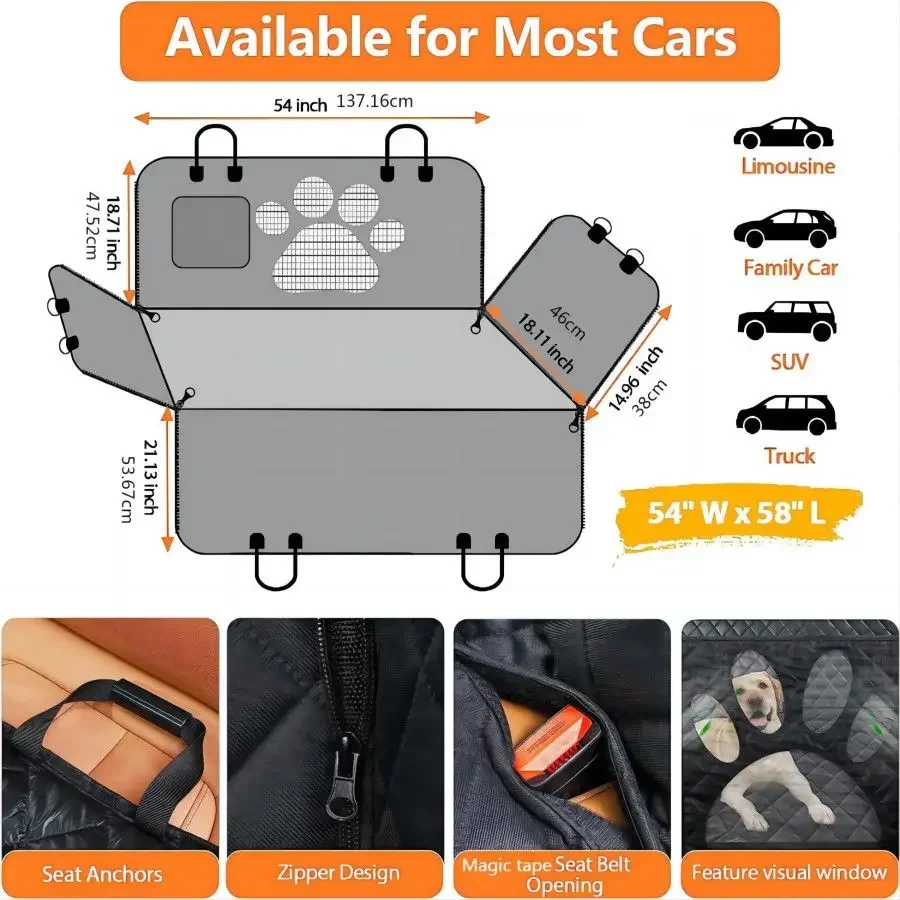 Dog Car Seat Cover for Back Seat, 100% Waterproof Dog Car Hammock with Visual Mesh Window and Side Zipper Car Seat and Door Protect