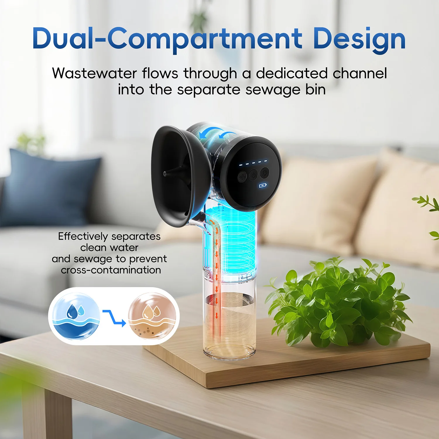【Separated Dual Tank Design】Our ear wax removal features an innovative separated dual tank design. More convenient and hassle-free to use. Unlike traditional ear washers that require you to rinse while catching dirty water with your other hand, our ear washers come with a separate 160ml water tank and a separate tank for collecting dirty water, which can directly flow sewage to the sewage bin, effectively separating clean water and sewage to avoid cross infection and make it easier to clean.