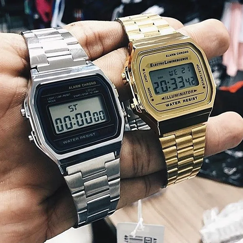 - This electronic clock is not only a fashion statement, but also a functional accessory with features such as a stopwatch, alarm, and calendar.