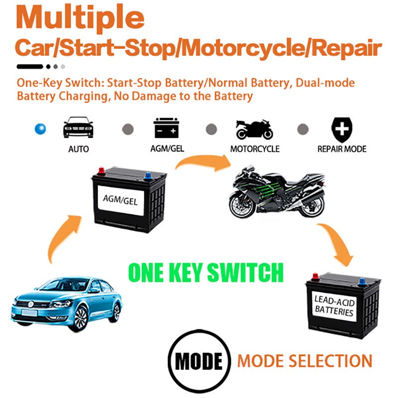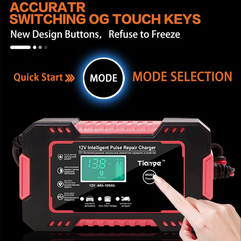 The Full Automatic Car Battery Charger 12V Display Smart Battery Charger Power Puls Repair Chargers Wet Dry Lead Acid Battery is a high-quality, intelligent battery charger designed for use with 12V batteries, such as those found in cars, trucks, motorcycles, and boats. This charger features advanced microprocessor control technology that enables it to automatically adjust the charging current and voltage to provide optimal charging for different types of batteries.