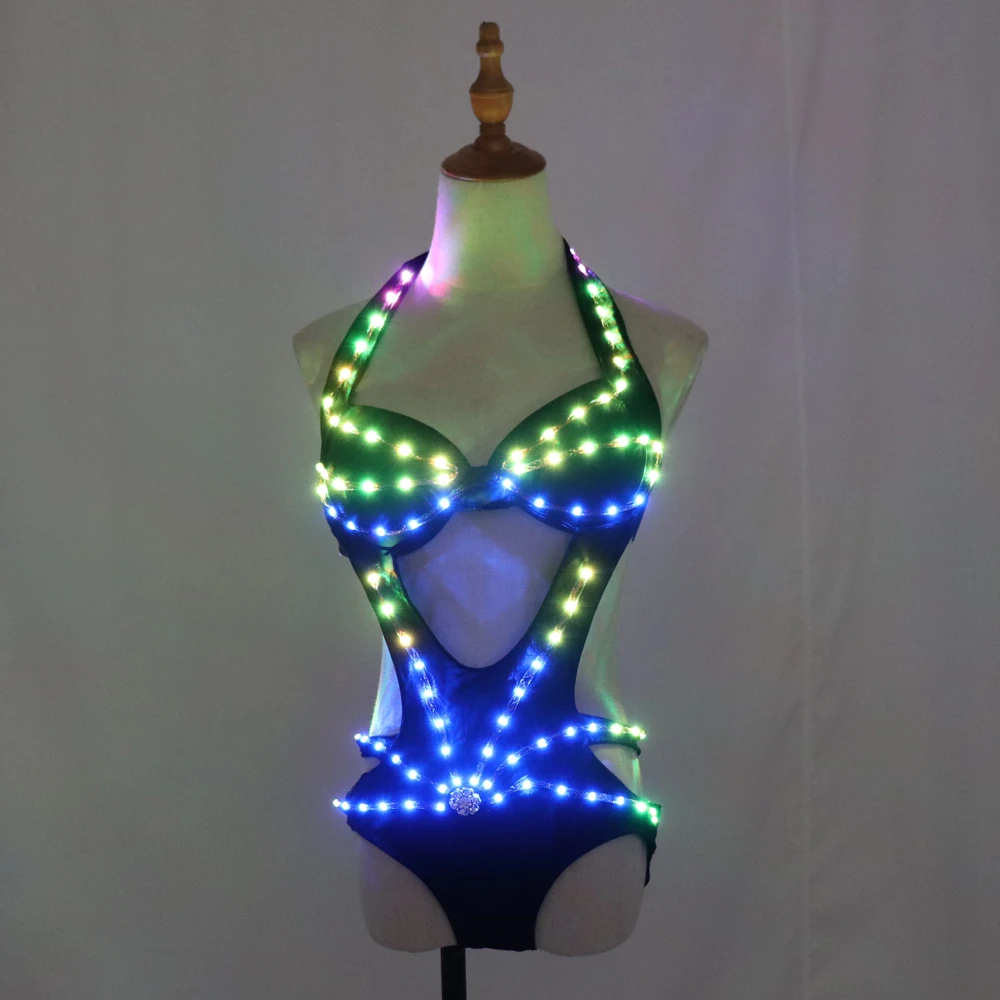 Full Color Pixel LED Lights Jacket Coat Jazz Bar Ds New Sexy Suit Dj Bikini Nightclub Gogo Lead Dancer Group Dance Costume
