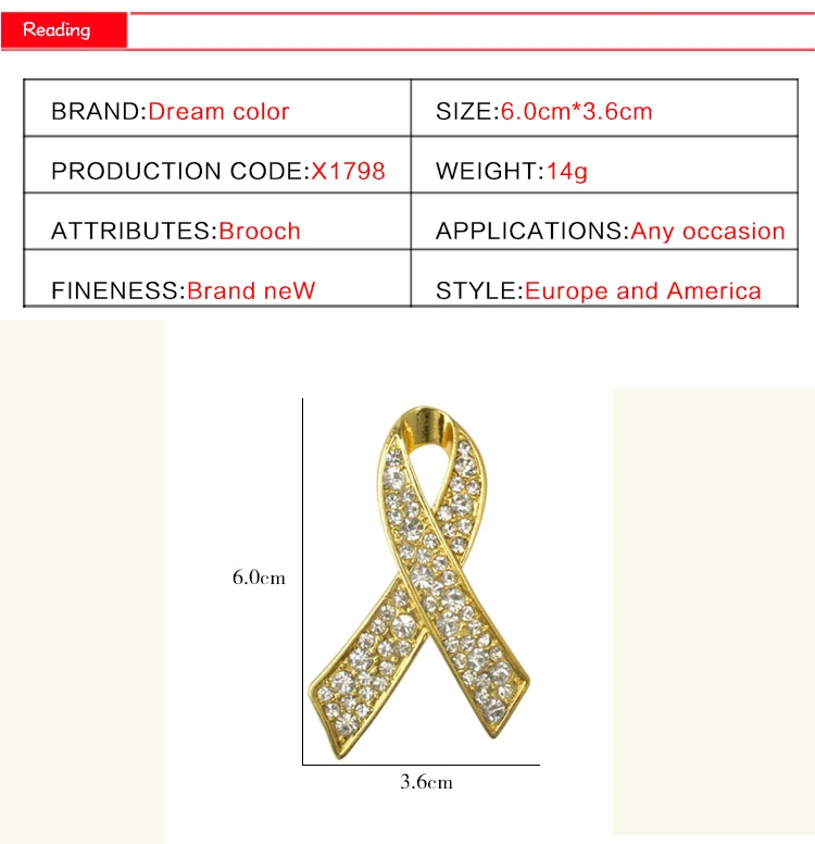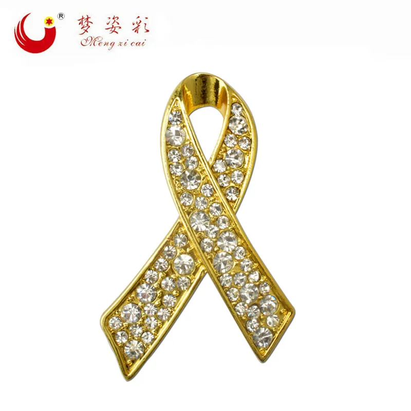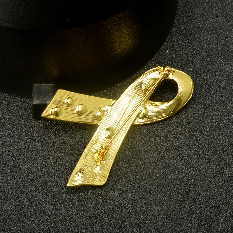 - The Gold Ribbon Awareness Brooch is a crystal-encrusted pin intended for showing support for various causes.