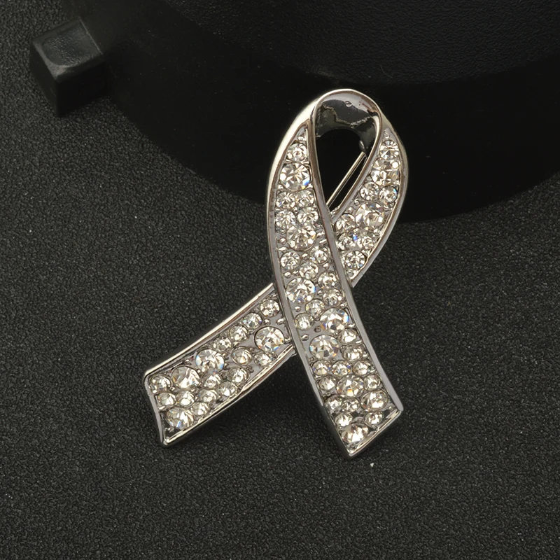 - The brooch is designed in a ribbon shape, which is commonly associated with support for breast cancer.