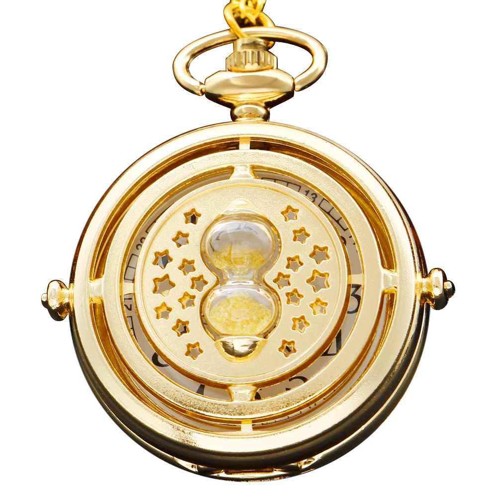 Golden Hourglass Star Men’s and Women’s Quartz Pocket Watch Vintage Fashion Necklace Pendant Student Festival Gift