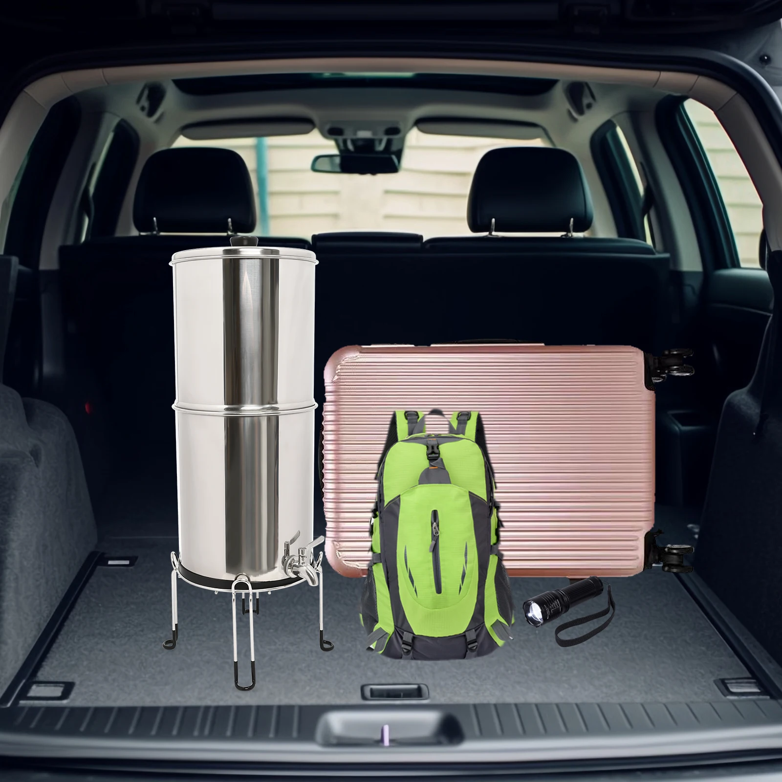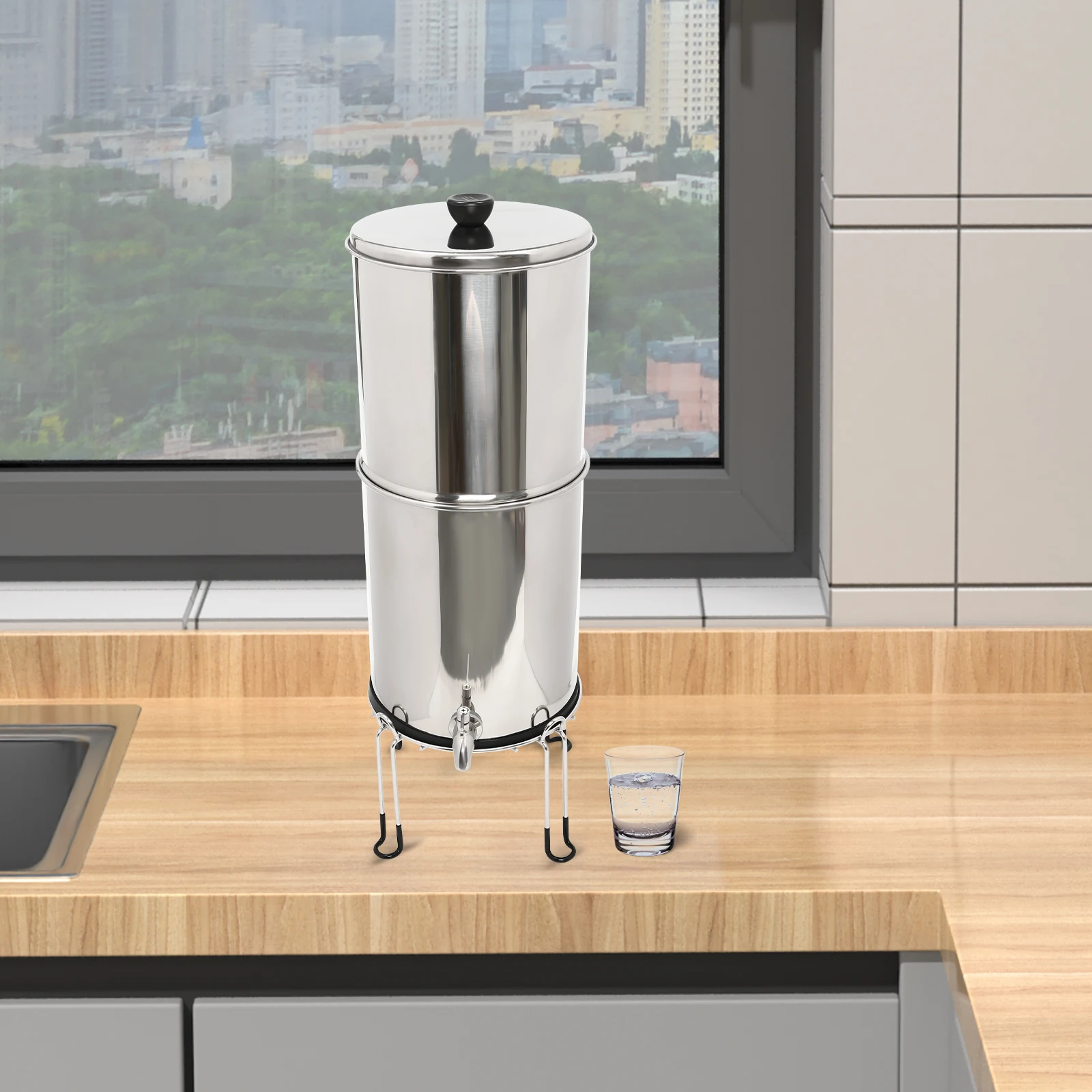 Gravity-fed Water Filter System, 2.25 Gallon Stainless Steel Countertop System with 2 Silver-loaded Carbon Rod Filters