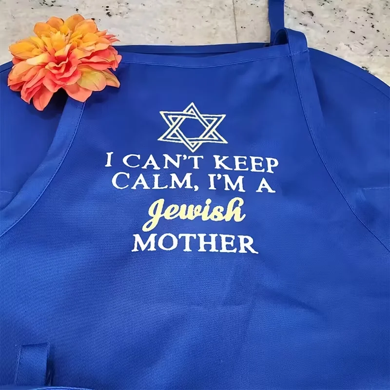 - The apron prominently features the text ‘Can’t Keep Calm I’M a Jewish Mom’, as a playful nod to the popular “Keep Calm” phrase.
