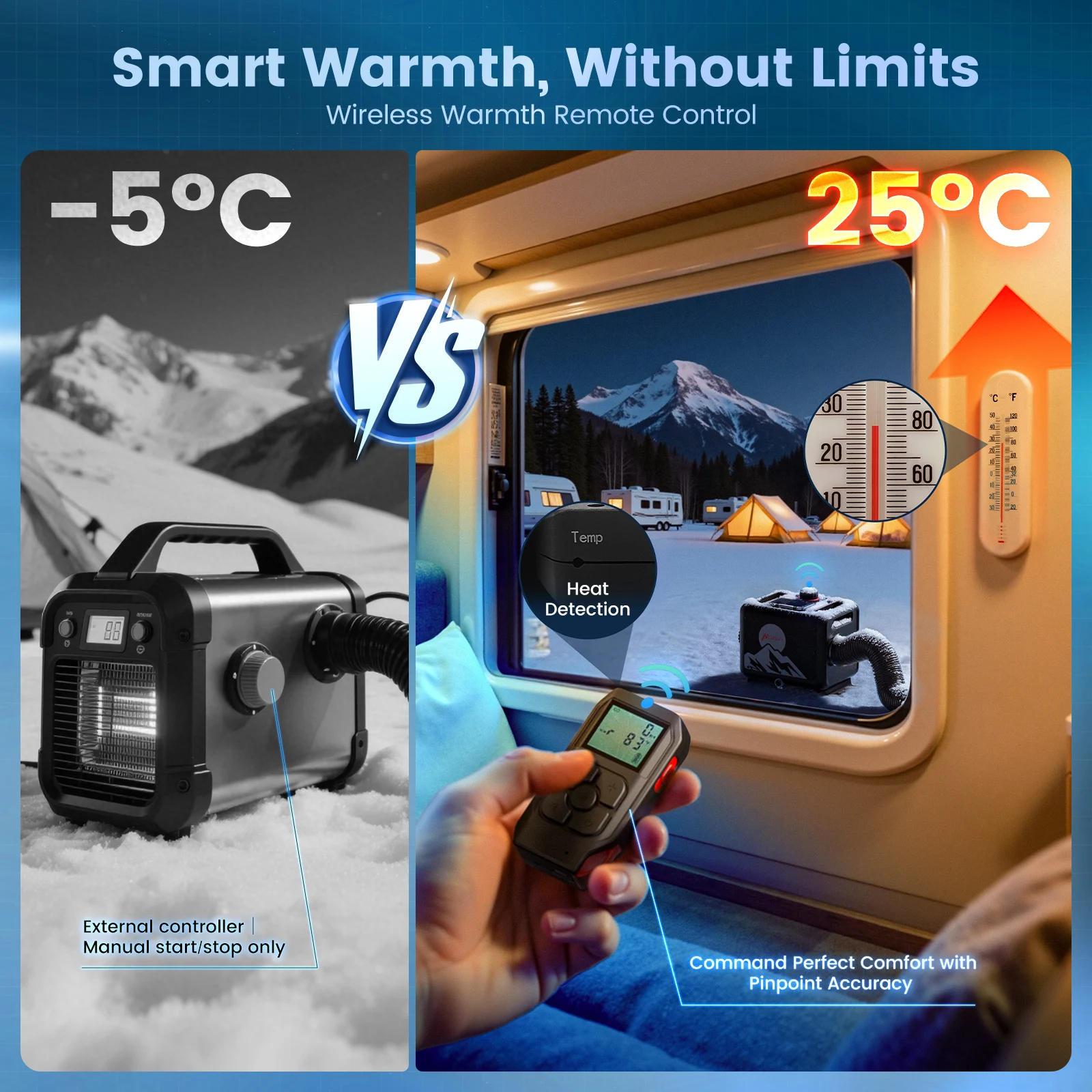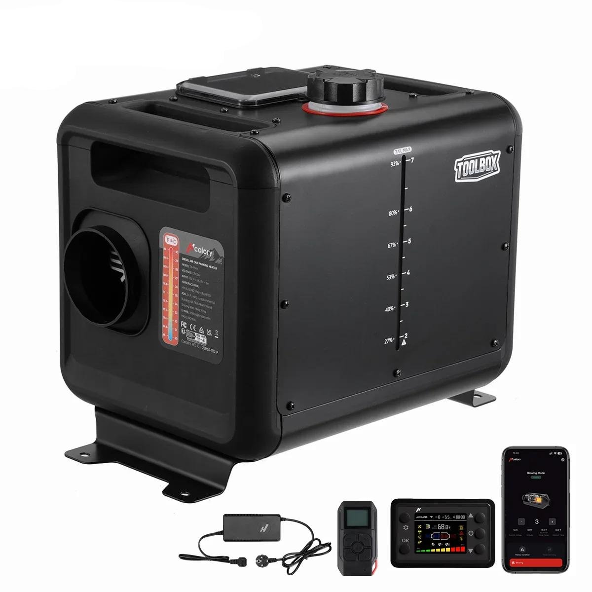 The Hcalory Toolbox Max Diesel Air Heater 8KW is a dynamic product that supports both 100-240V AC and 12/24V DC electrical system, making it versatile for multiple usage scenarios. With an impressive 8KW power output, this diesel auxiliary heater is adept in delivering efficient heating results.