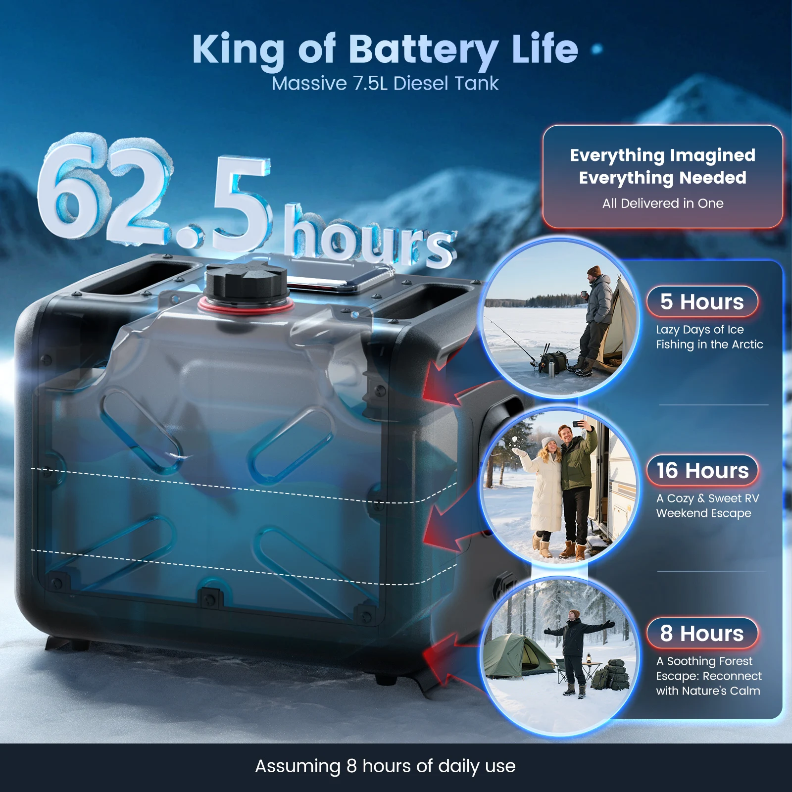 Hcalory Toolbox Max Diesel Air Heater 8KW, 100-240V AC & 12/24V DC Diesel Auxiliary Heater with 7.5L Fuel Tank & CO Alarm Sensor