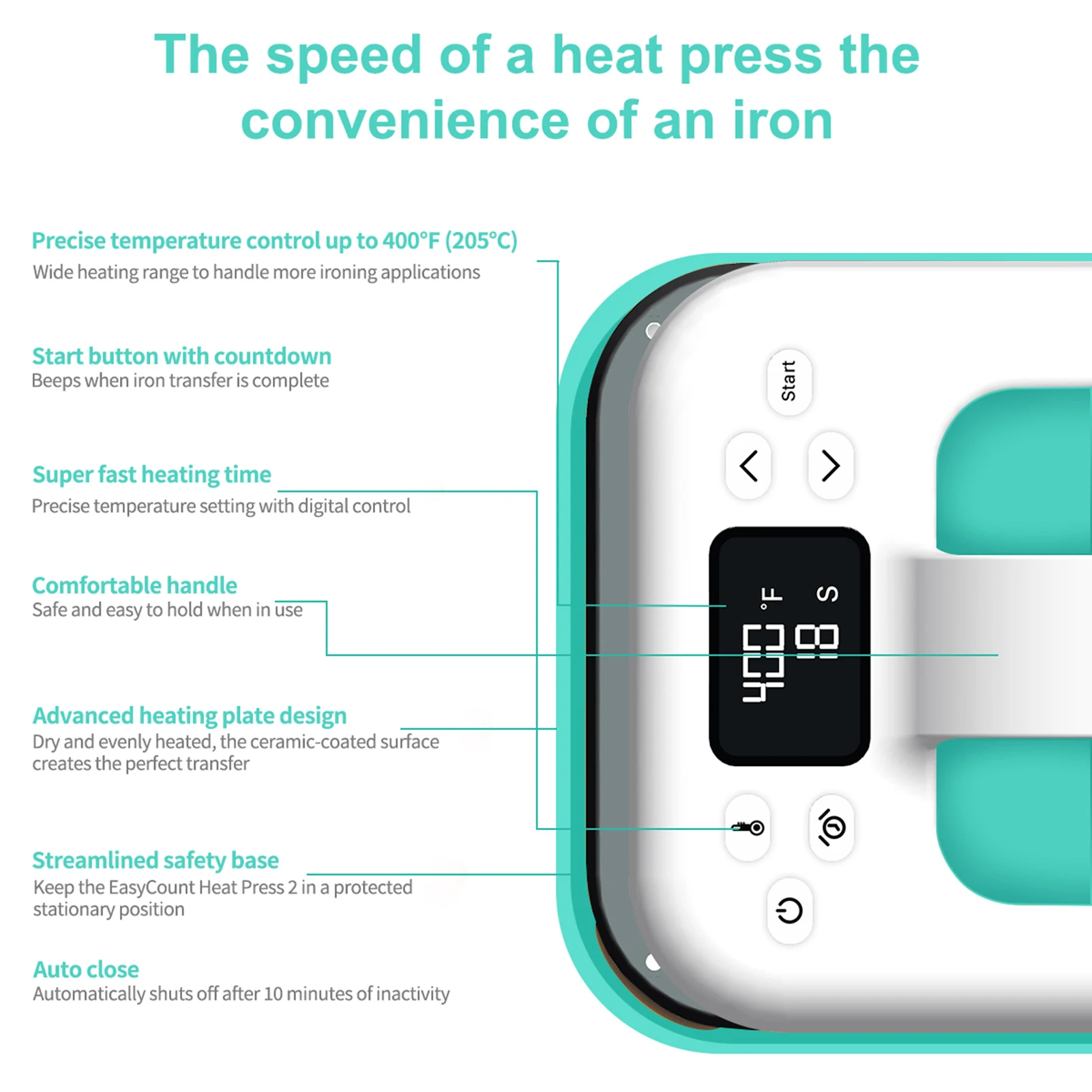 - There is a timer incorporated in the machine to ensure precise control over the heat transfer process.