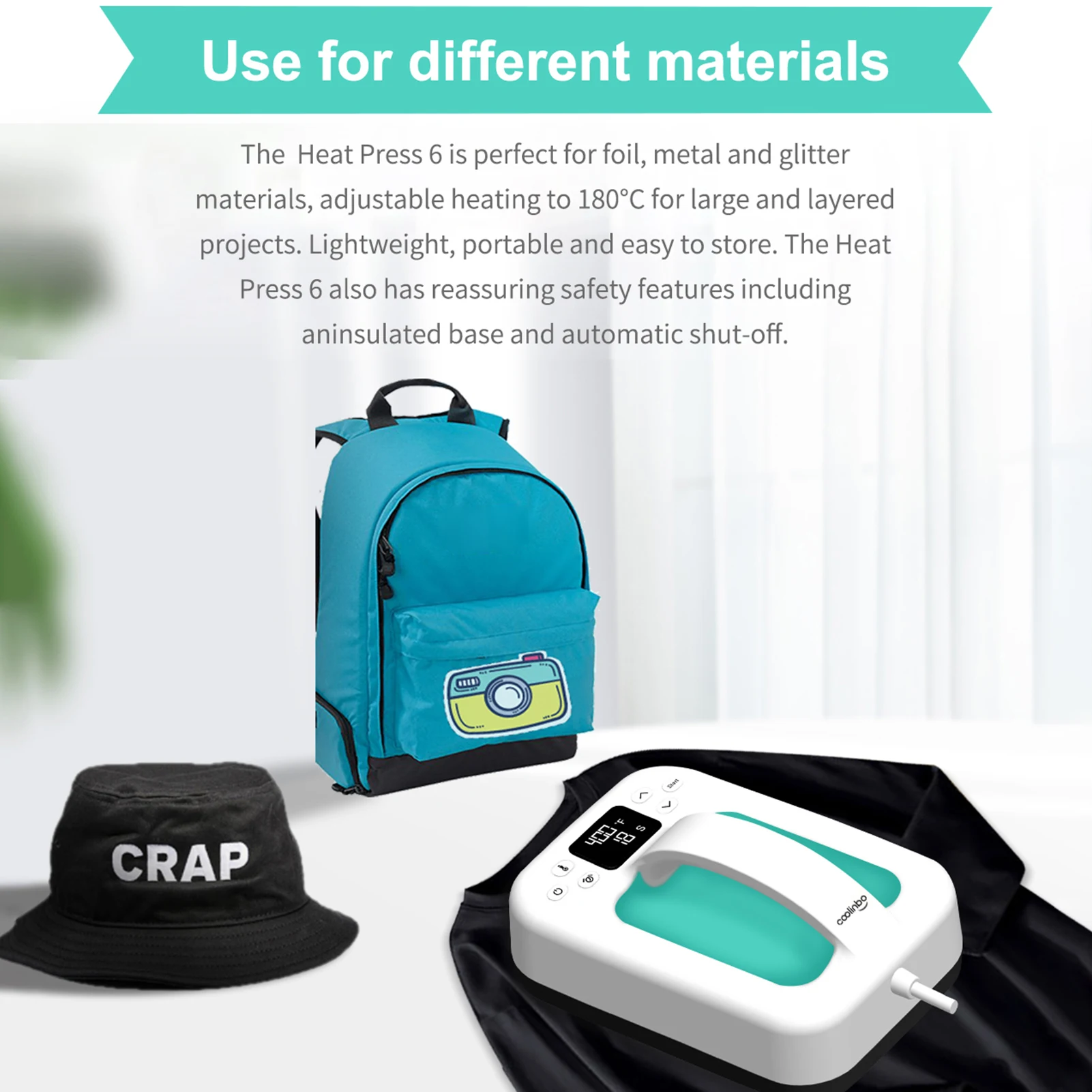 LCD Display: The Coolinbo HP6 7×5 inch Handheld Mini Heat Press Machine features an LCD screen, allowing you to easily monitor and adjust settings for precise control over your heat transfer projects.