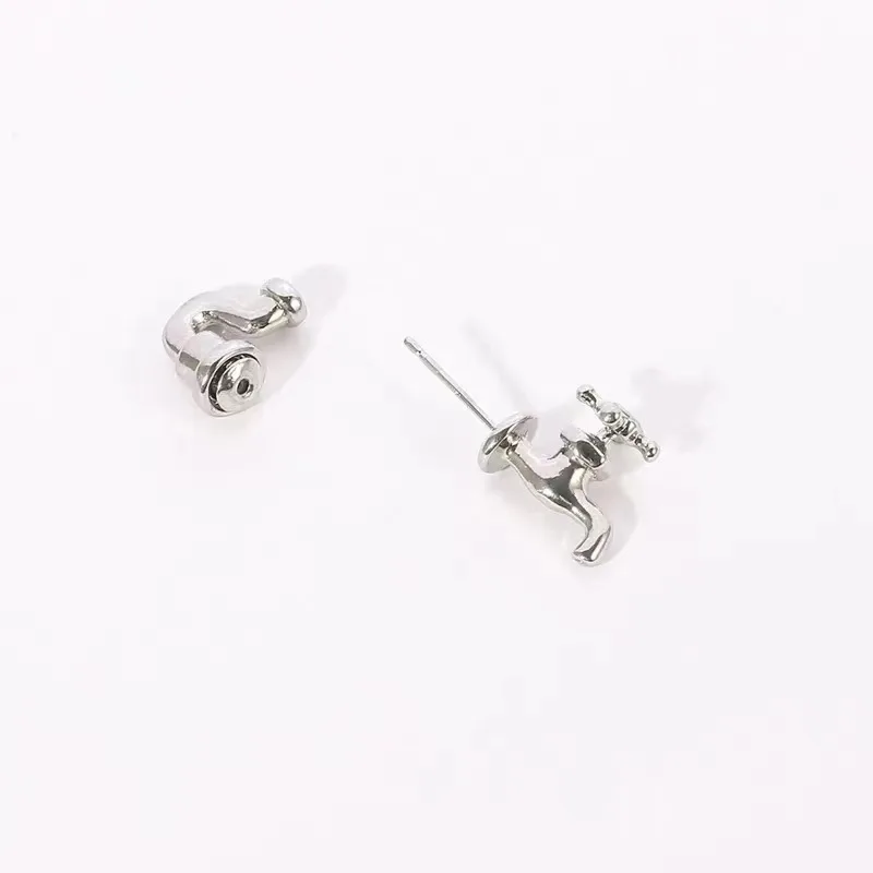 Industrial Punk Water Faucet Shape Stud Earrings For Men Women Gothic Piercing Earring Personality Halloween Fashion Jewelry