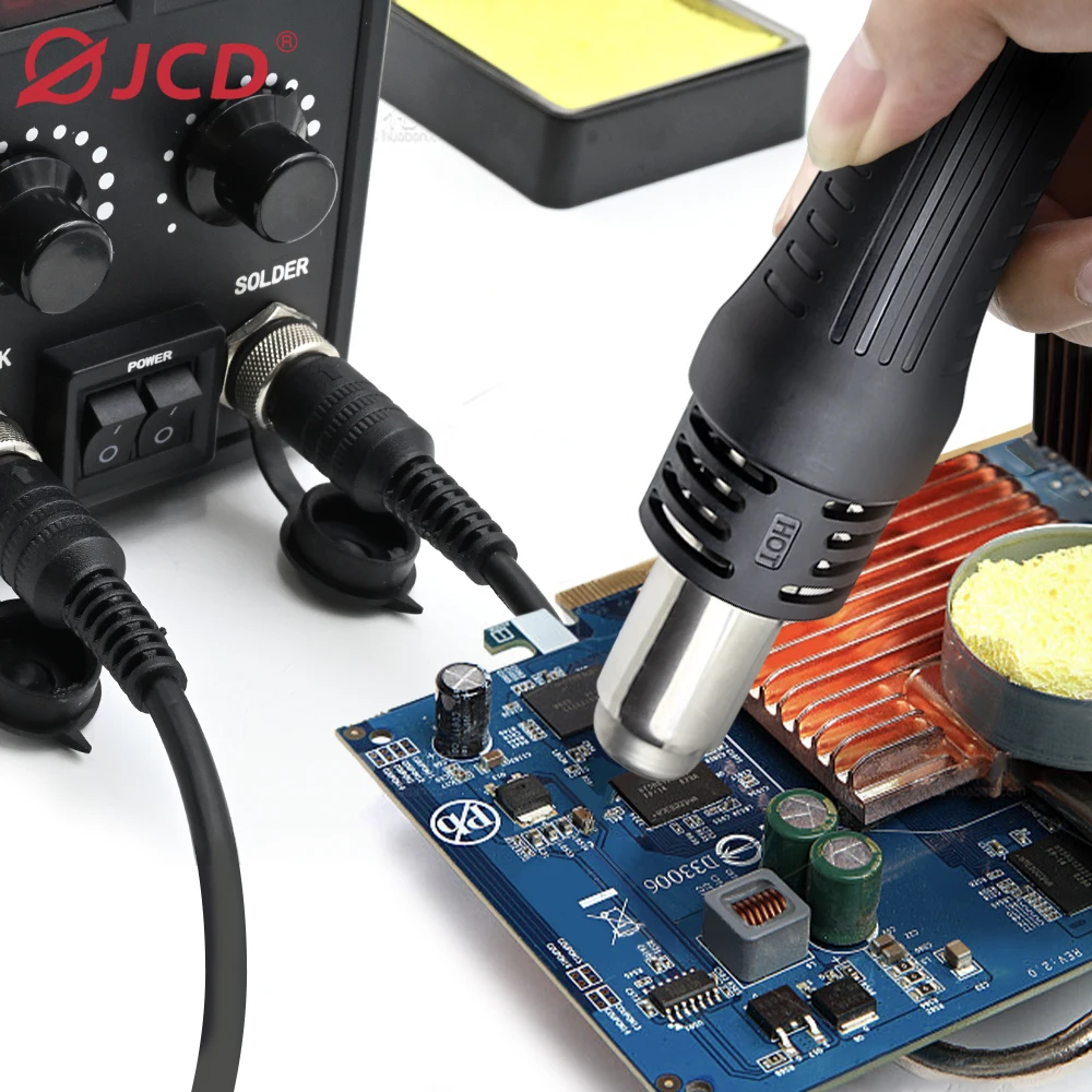 - The JCD 8586D Soldering Station is a combined tool that features both a soldering iron and a hot air gun.