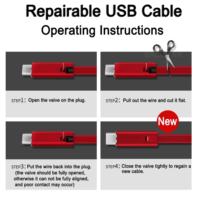 The Magic Renewable USB Cable Cutting Repair Charging Wire is a groundbreaking piece of technology that provides a functional and innovative solution to a common problem—damaged charging cables. This product is a game changer for iPhone, Samsung, Xiaomi and other Type C and Micro USB devices.