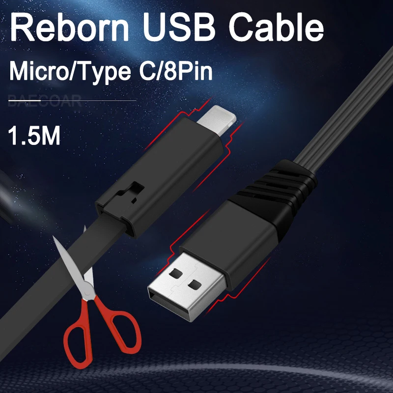 Magic Renewable USB Cable Cutting Repair Charging Wire for iPhone Samsung Xiaomi Type C Cables Microusb Funny Phone Cord