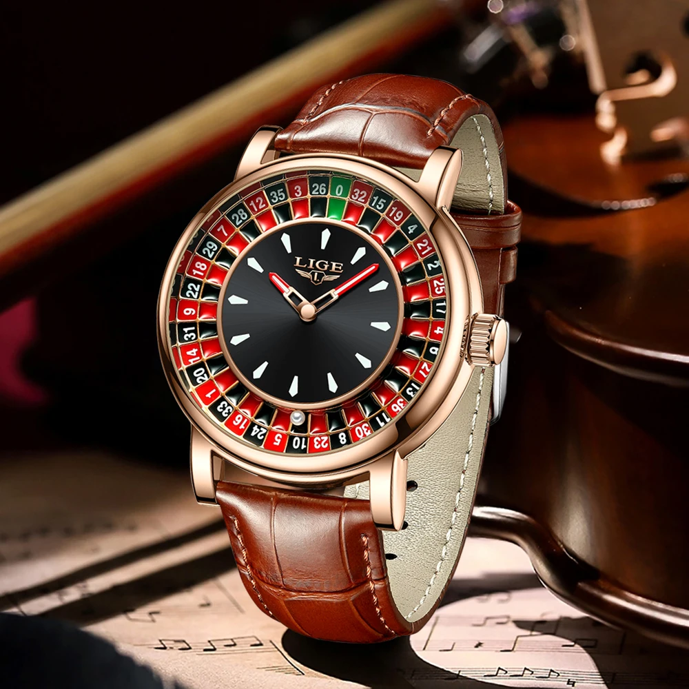 The Men’s Leather Watch with Rotating Dial Design is a blend of classic sophistication and modern innovation. This product stands out with its unique rotating dial, a design element that brings a sense of dynamism and movement to the piece. The plane of the dial is characterized by a smooth rotation that complements the ticking of the minute and hour hands.