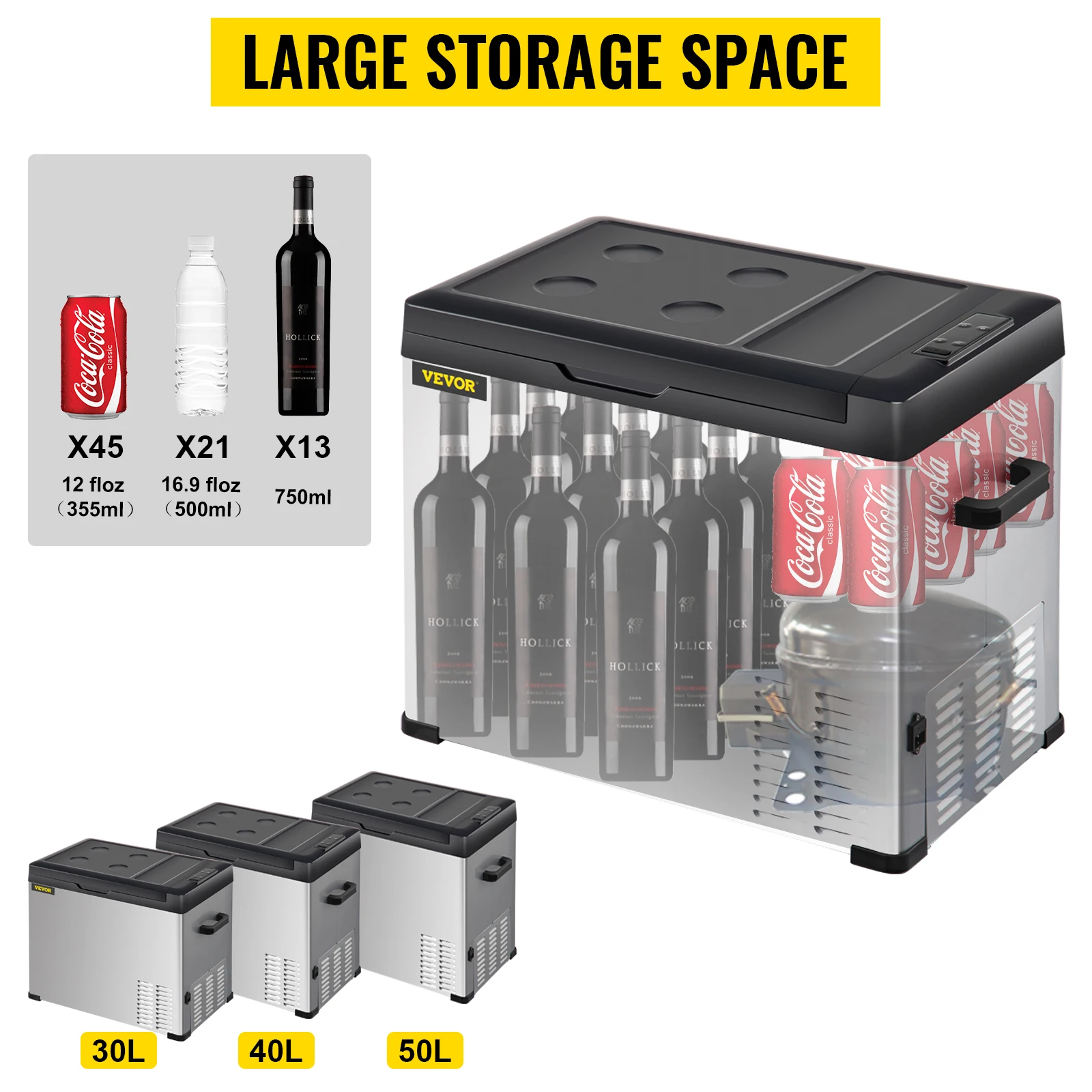 - 【53 Qt Storage Space】: This portable refrigerator with 50L/53 quart capacity is large enough to hold 68 cans of 330 ml/11.1 floz cola, 37 bottles of 550 ml/18.6 floz drinks, and 20 bottles of 750 ml/25.3 floz red wines. With a CE certification, you can store many drinks, vegetables, fruits, seafood, meat, skincare products, breast milk in it without worry..