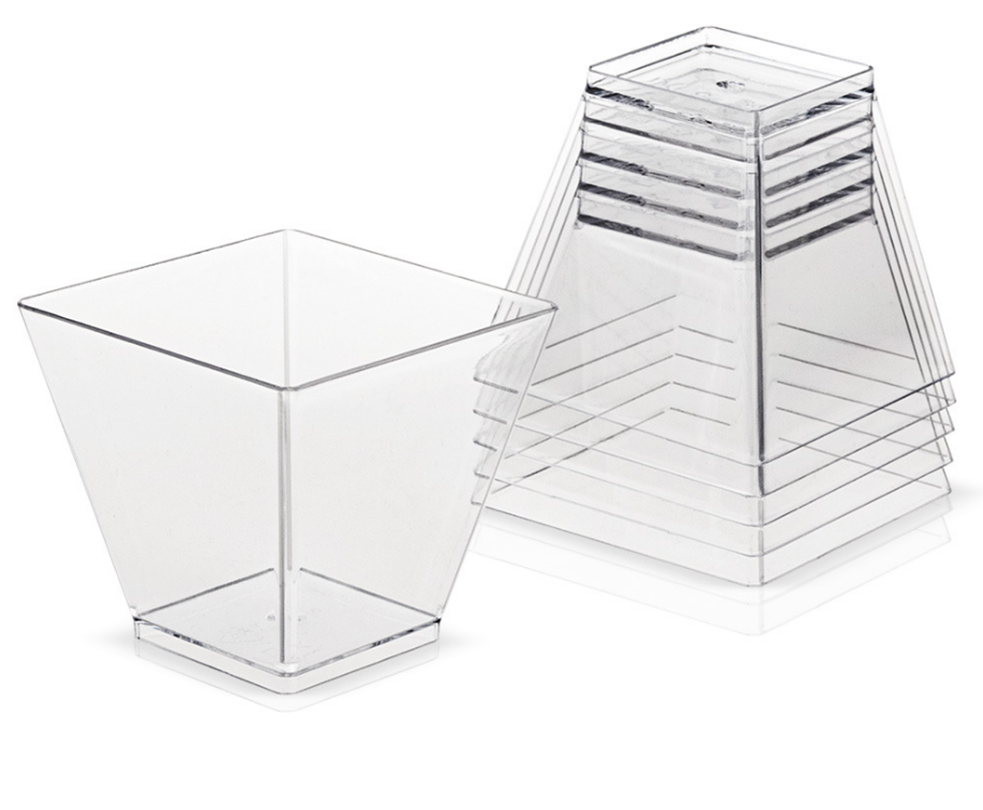 - A simple and elegant square cup that is great for desserts like chocolate mousses, shortcakes, tiramisu, and more