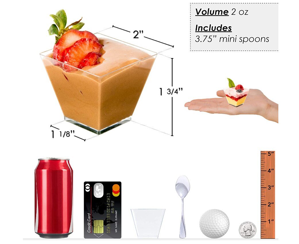 - Serve delicious desserts and appetizers for your next party in these clear mini plastic dessert cups