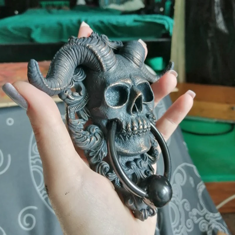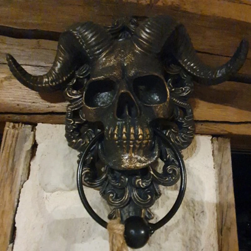 Modern Art Door Ring Hell Demon Horned Skull Hanging Door Knocker-heavy Duty Gothic Doorknocker-perfect Home Decoration Knockers
