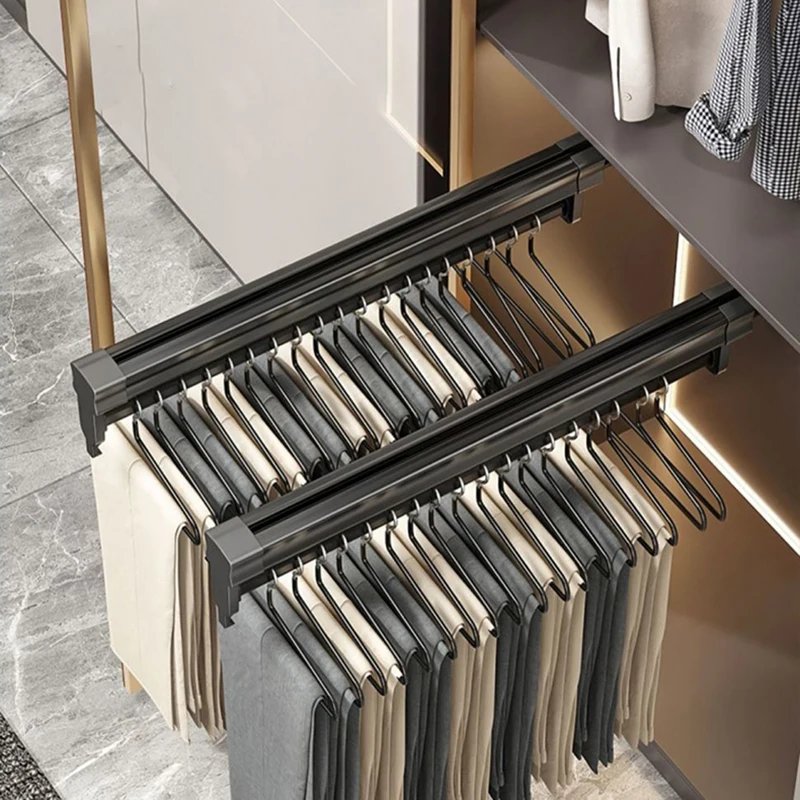 Multifunctional Aluminum Alloy Pants Rack Wardrobe Retractable Slide Rails Household Clothes Storage Clothes Bracket Hook