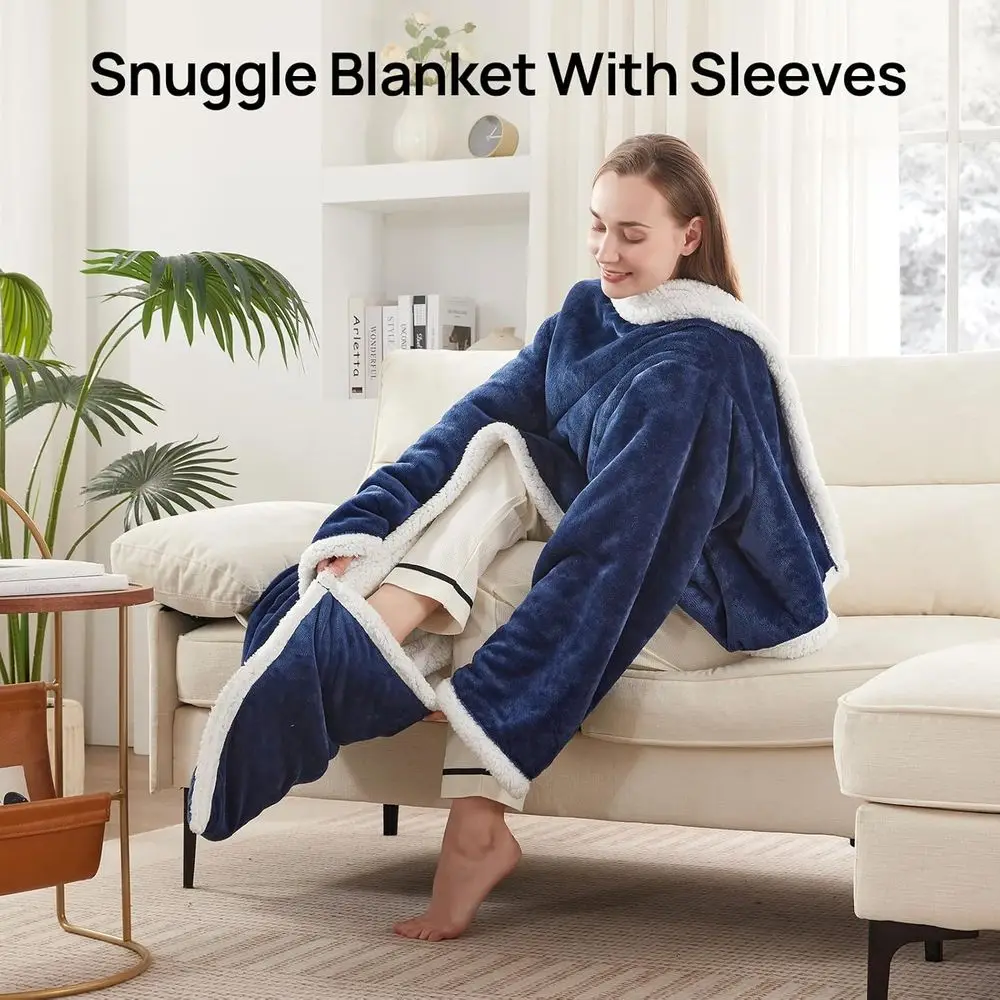 With dimensions of 50×70 inches, plus an additional 18 inches for the foot pocket, this blanket offers ample coverage for most adults. The blanket’s design also includes sleeves, allowing it to be worn, effectively providing the user with a wearable cocoon of warmth. Its navy color adds a touch of elegance, making it not just a comfort asset, but also a potential complement to the décor of your home.