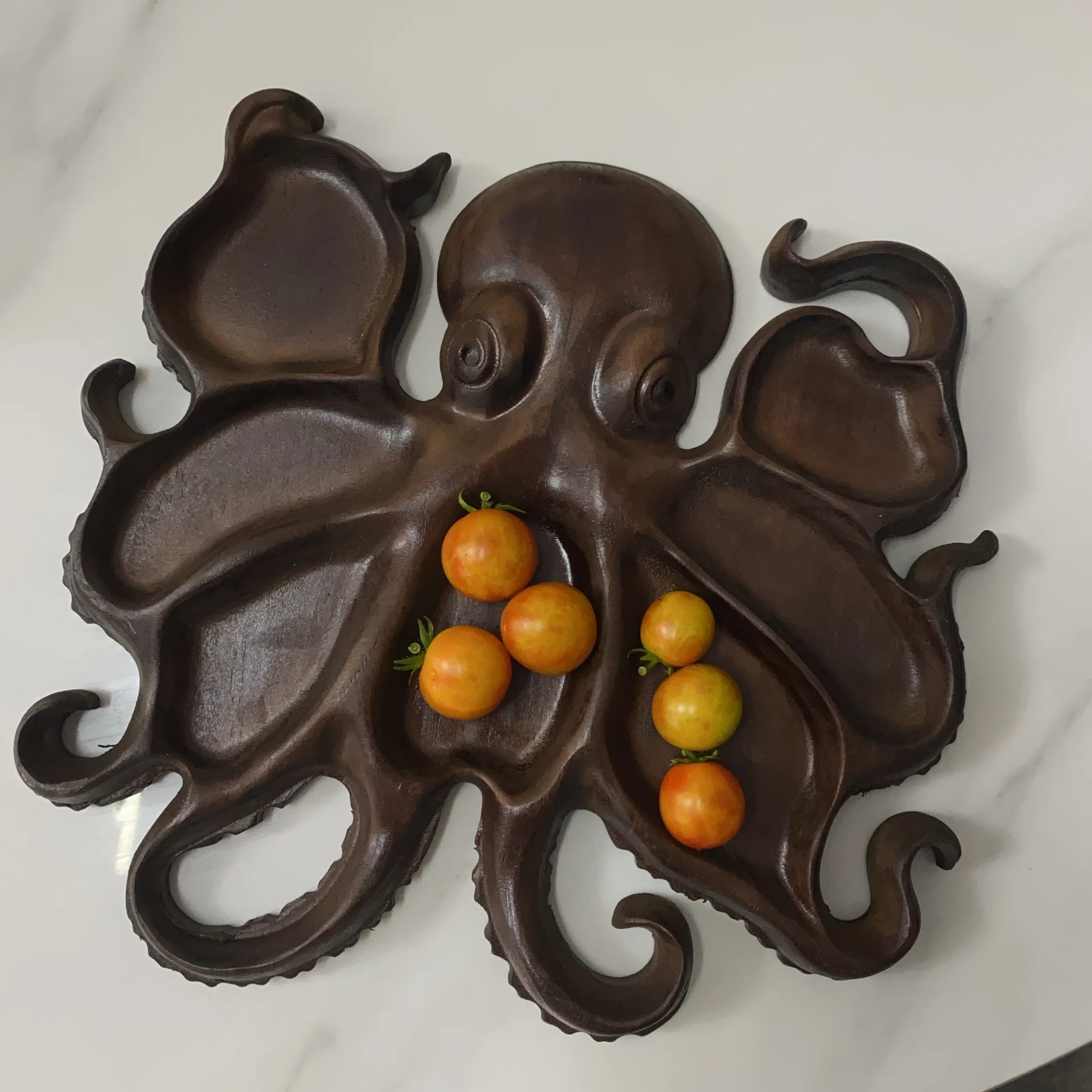 Octopus Food Tray Wooden Fruit Serving Pan Cheese Platter Dessert Storge Bowl Partition Food Classification Decorative Tray