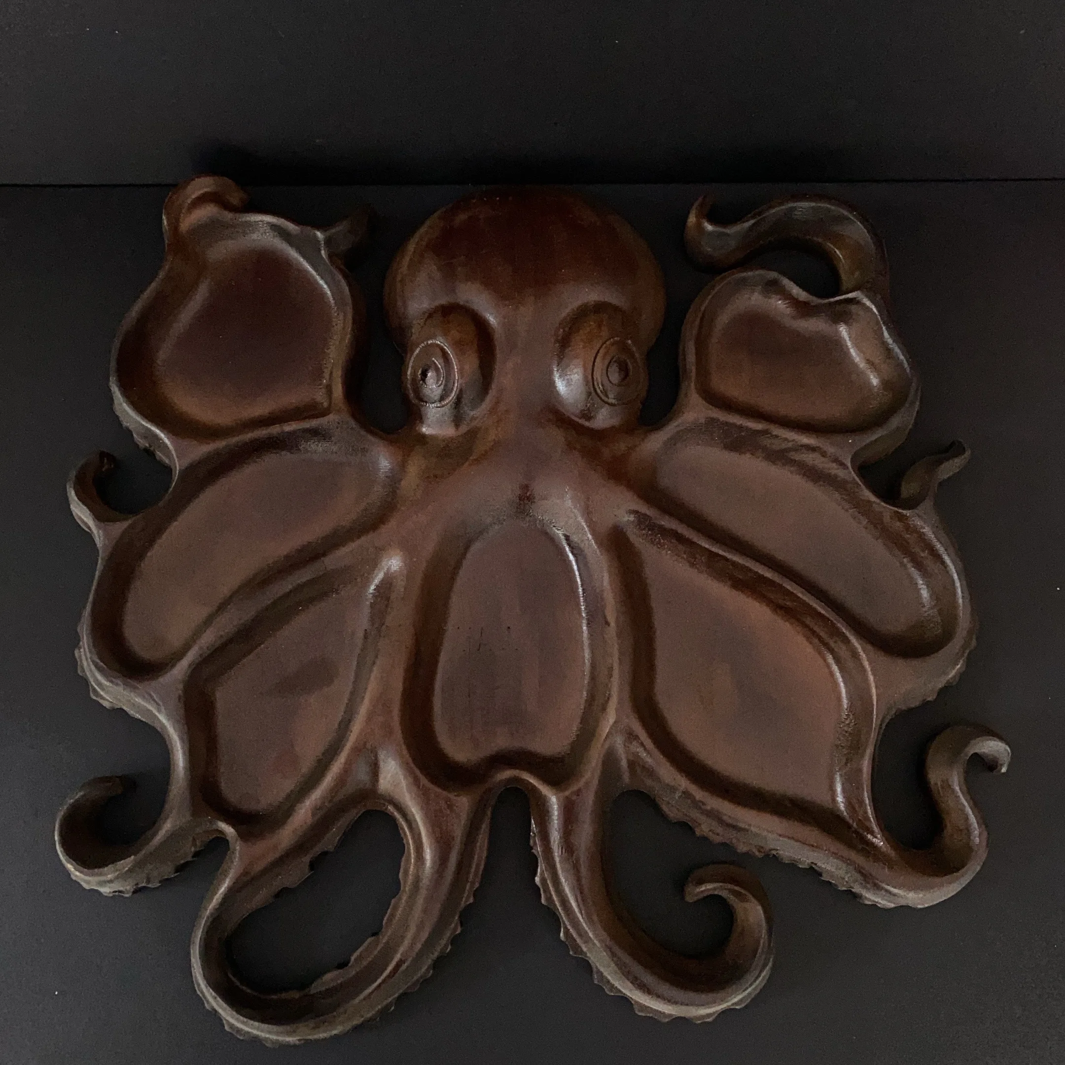 • The Octopus Food Tray is carefully crafted from wood, lending it a natural, rustic appeal.