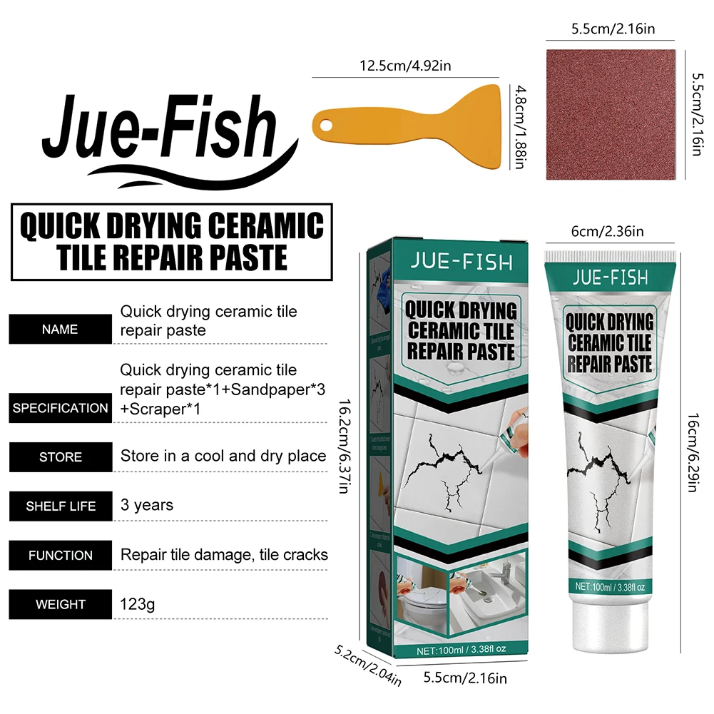 Included: Ceramic tile repair paste * 1+sandpaper * 3+scraper * 1