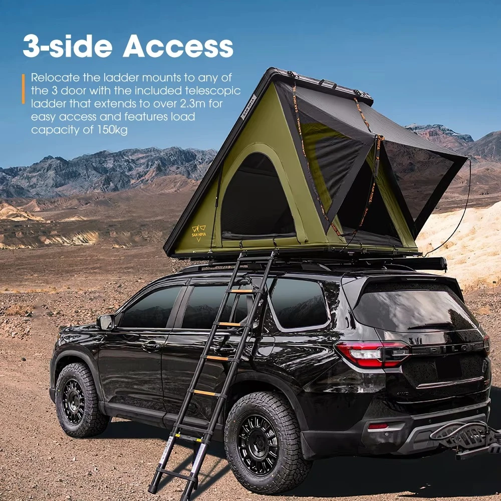 The Quick Setup Light Weight Rooftop Tent is a versatile camping apparatus that turns any vehicle into a portable haven under the sky. Sporting a sleek aluminum hard shell, it offers impressive durability and resilience against severe weather and environmental conditions. Despite its robust construction, its remarkable feature lies in its lightness, making it an easy-to-carry choice for numerous adventurers.