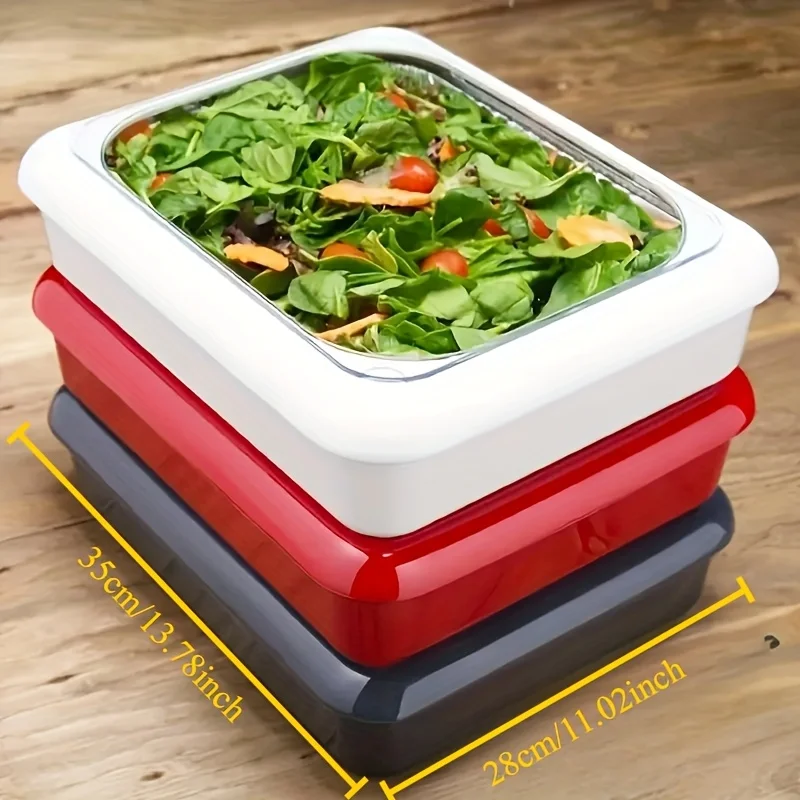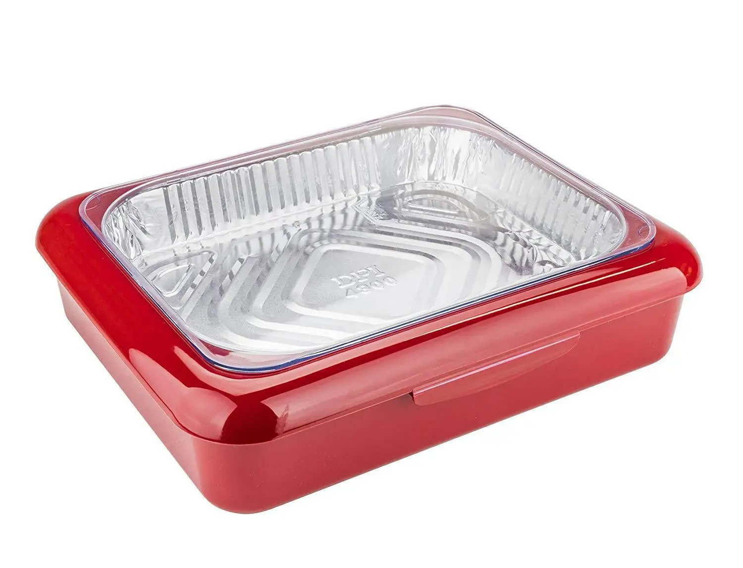 Rectangular Insulated Food Storage Container with Tin Foil Lining – Reusable,Flip-Top Plastic Tray for Lasagna,BBQ and Picnics