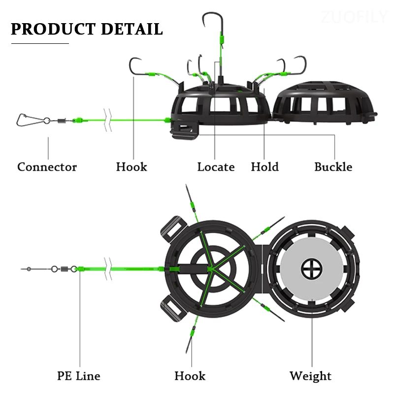 • The bait cage is accompanied by PE line group feeder sinker for efficient fishing.