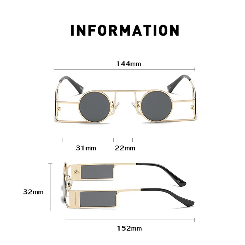 The Round Punk Sunglasses is a unisex product carrying an interesting combination of vintage aesthetics and fresh contemporary style. The design takes inspiration from punk and steampunk culture, adding a distinct edge to the fashion accessory.