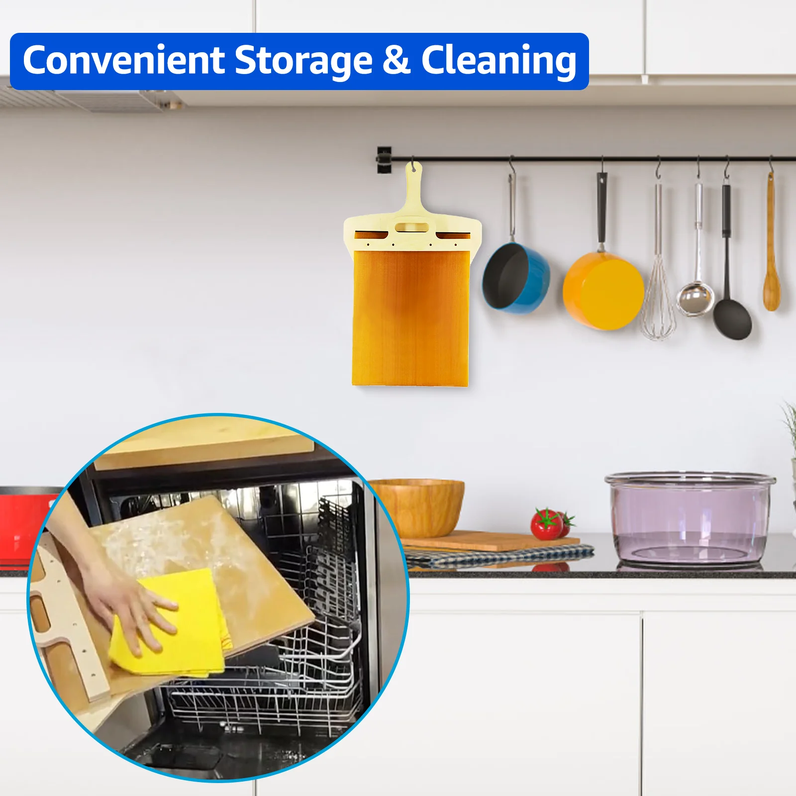Apart from pizzas and bread, it is also efficient in handling other baked goods and even hot pots or pans. Other than baking, it is highly functional in other kitchen tasks, such as sauce pick-ups and cleanup. The design supports easy removal of leftover food and grease, providing a cleaner cooking environment. This not only simplifies the cleaning process post cooking but also maintains the longevity and hygiene of cooking equipment.