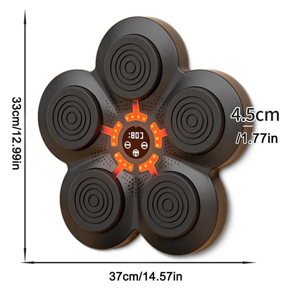 The Smart Music Boxing Machine Wall Target provides a modern approach to traditional boxing sports training tactics. It elevates the training experience by incorporating LED lighting, which not only serves visual appeal but also provides real-time feedback and target tracking for the user. Its role is to enhance agility and reaction time for those engaged in boxing or similar sports where quick reflexes and precise movements are crucial.